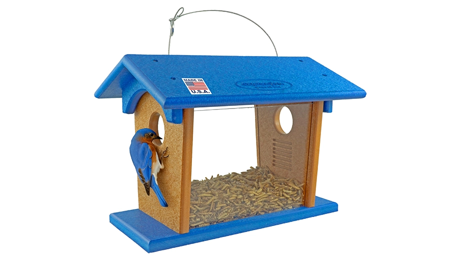 DutchCrafters Hanging Bluebird Feeder for Mealworms with 1 1/2″ Entrance Hole, Outdoor Live or Dried Mealworm Feeder for Bluebirds – Amish USA Made (Gray & Blue)(Blue & Cedar)