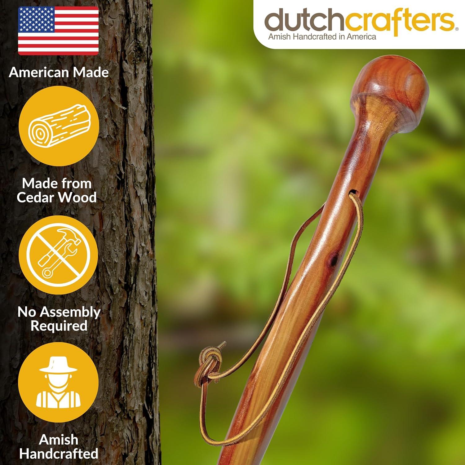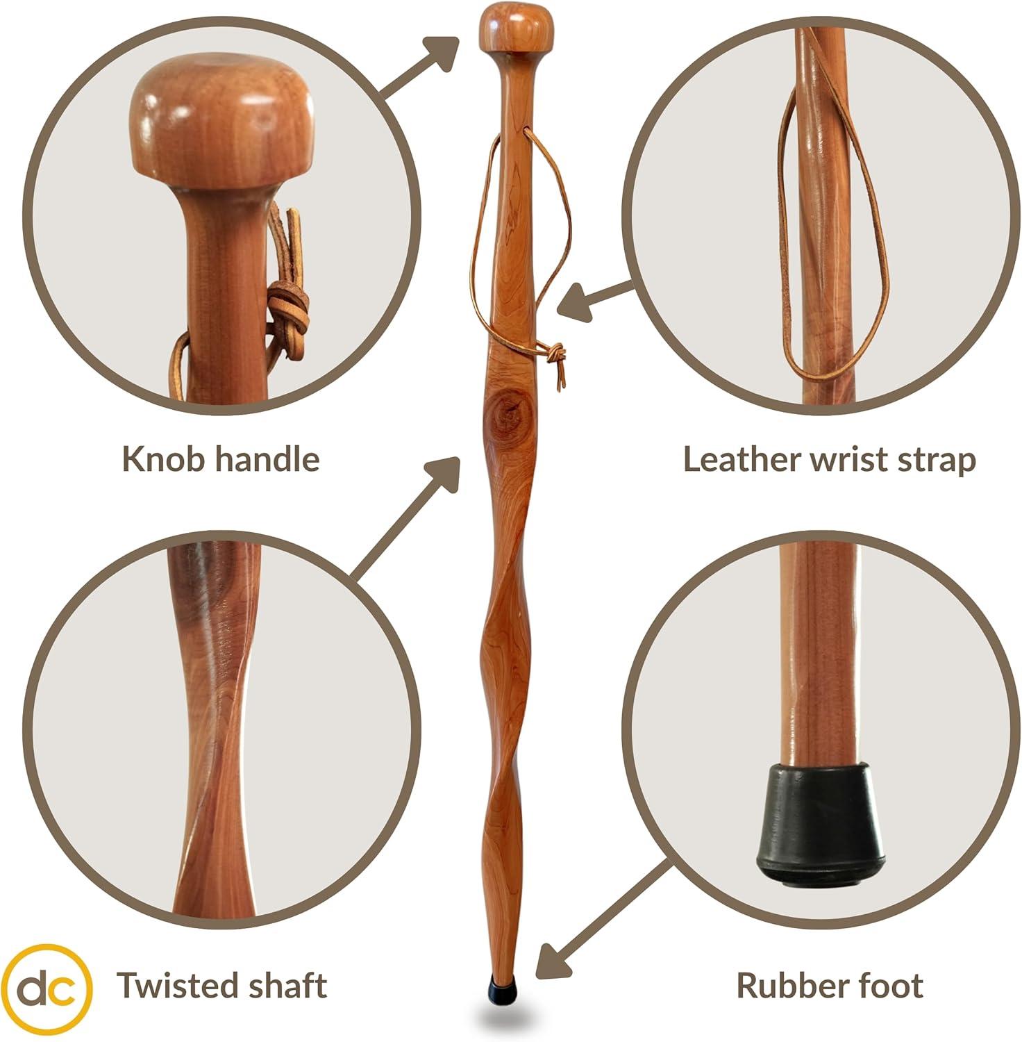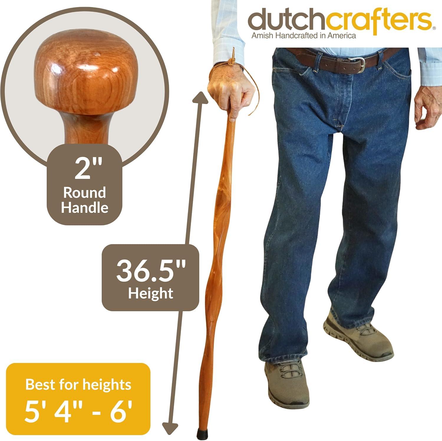 DutchCrafters 36″ Twisted Carved Solid Wood Knob Handle Walking Cane, Wooden Walking Sticks for Men with Leather Wrist Strap, Rubber Foot for Men, Women, Seniors – Amish American Made(Cedar)