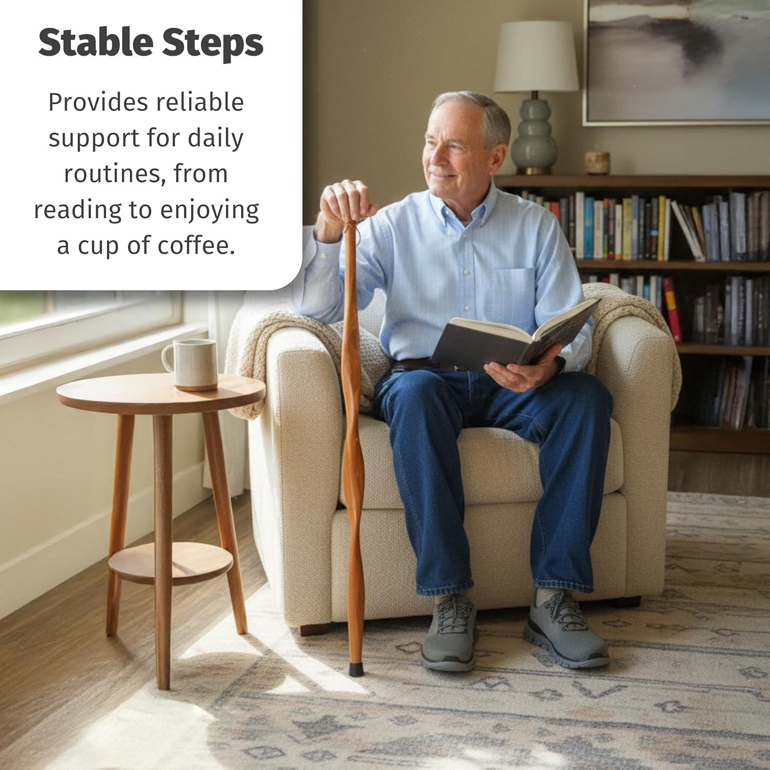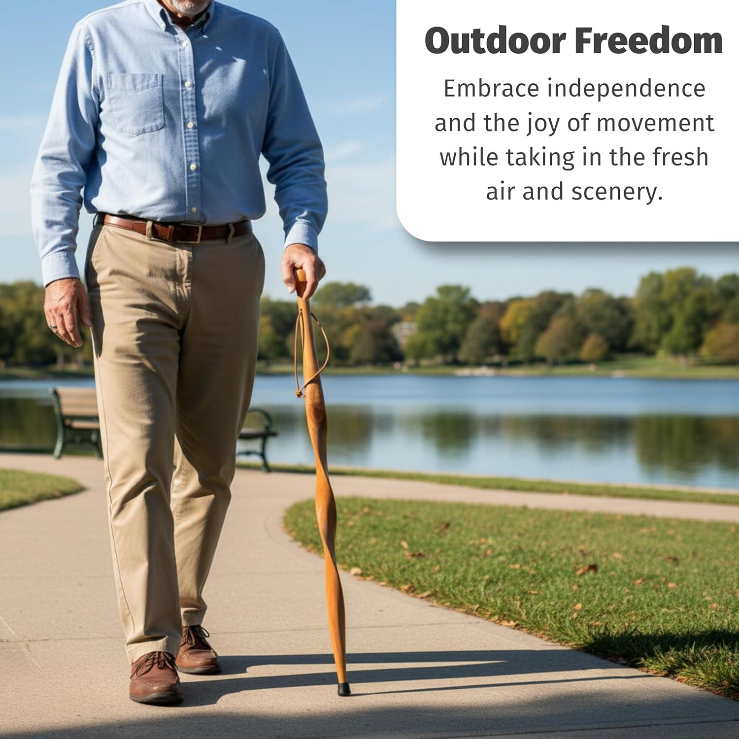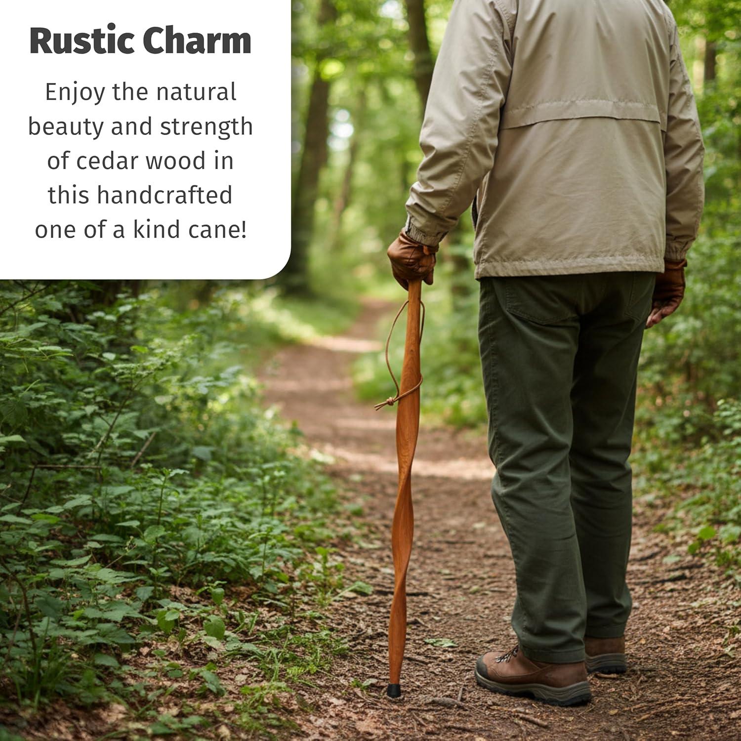 Unique Twisted Design: Exhibit style and sophistication with our twisted design wooden walking stick. This elegant feature adds a unique touch, making it not only a functional cane but also a statement piece for both men and women.