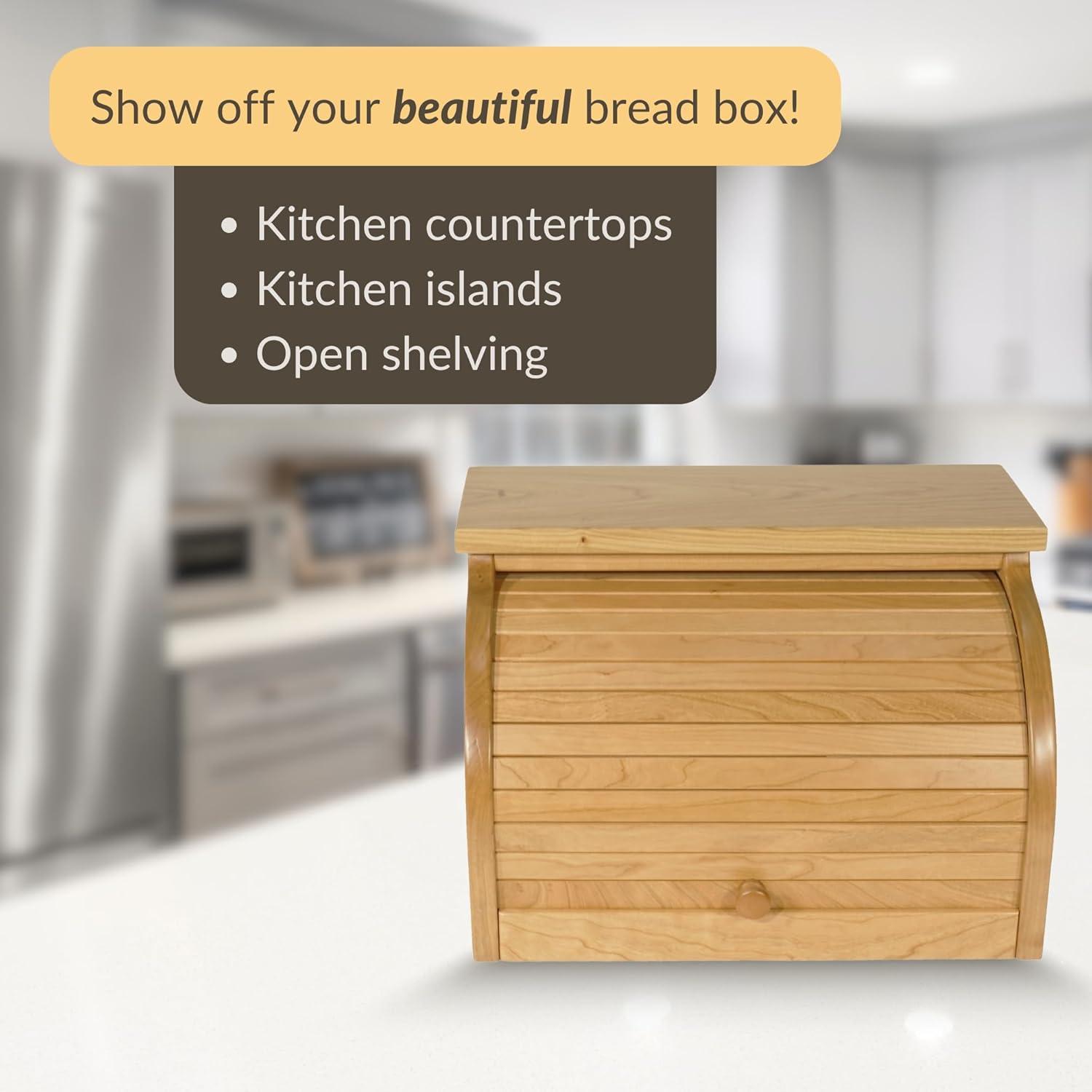 DutchCrafters Amish USA Made Solid Wood Countertop Bread Box, Bread Holder for Kitchen Counter, Large Bread Box for Kitchen Countertop (Cherry - Natural)(Cherry - Natural)