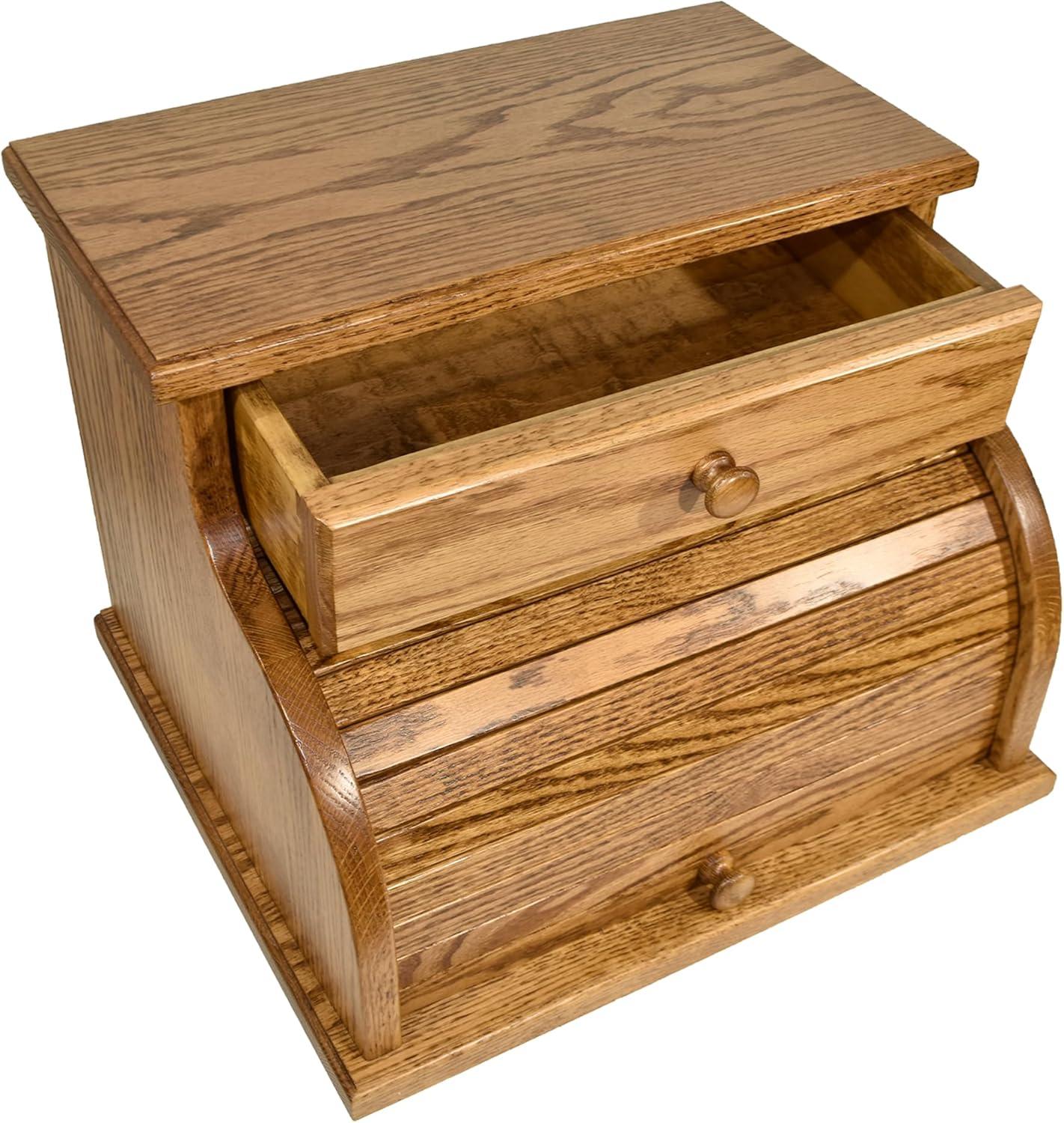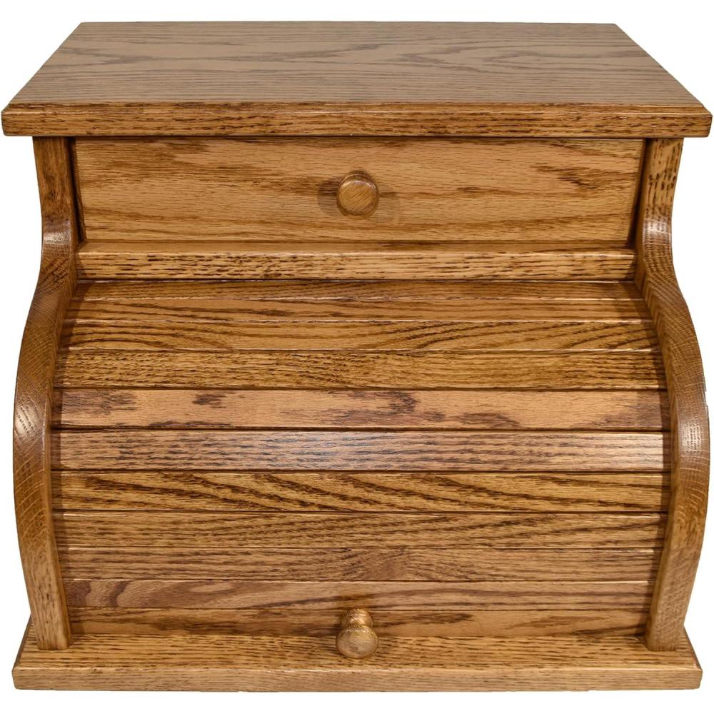 DutchCrafters Amish USA Made Solid Wood Countertop Bread Box with Drawer, Bread Holder for Kitchen Counter, Large Bread Box for Kitchen Countertop (Cherry - Michael's Cherry)(Oak - Medium Walnut)