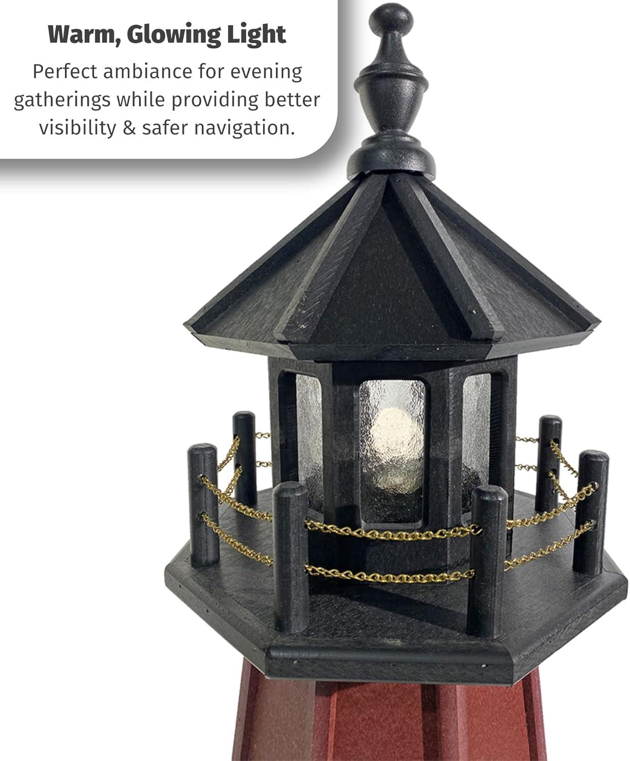 DutchCrafters Barnegat, NJ Lighthouse Replica Garden Statues with Dusk to Dawn Solar Outdoor Lighting, Solar Garden Decor for Outside, Lighthouse Gifts - Amish Furniture Made in USA (2' with Base)(4' with Base)