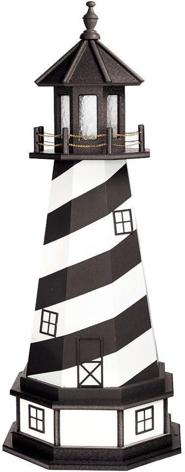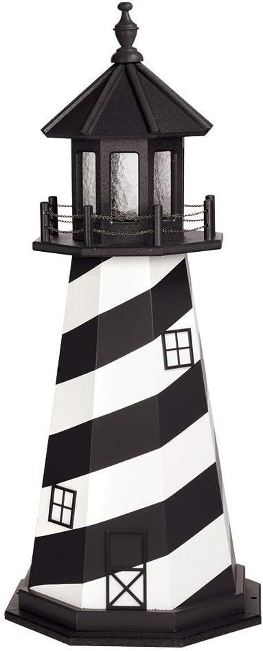 DutchCrafters Cape Hatteras, NC Decorative Light Up Wooden Lighthouse, Outdoor Yard Garden Statue – Amish Made in America (5′, Patriotic)(Black & White)