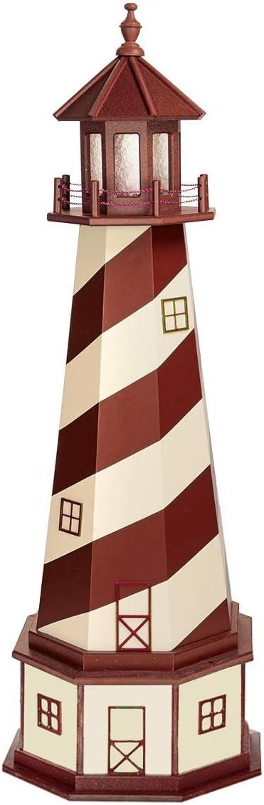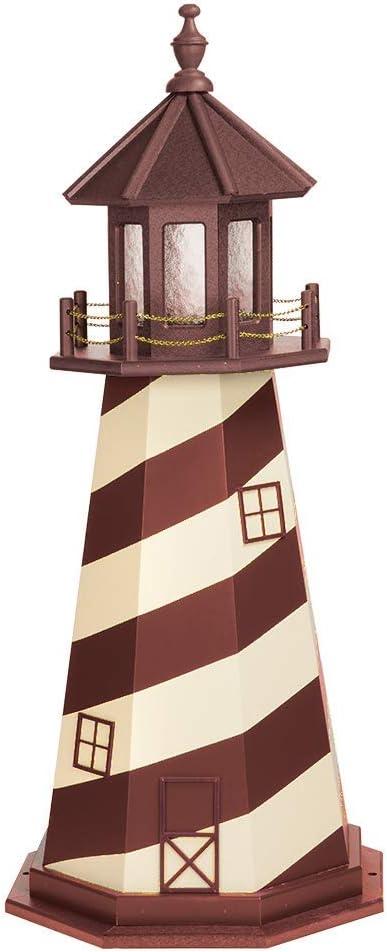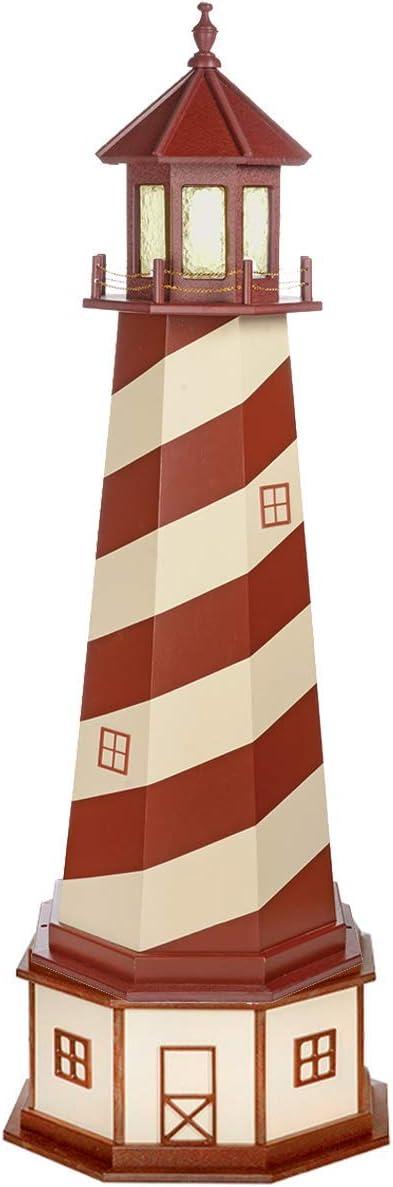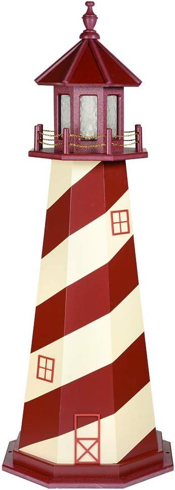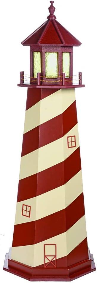 DutchCrafters Cape Hatteras, NC Decorative Light Up Wooden Lighthouse, Outdoor Yard Garden Statue – Amish Made in America (5′, Patriotic)(Cherry Wood & Ivory)