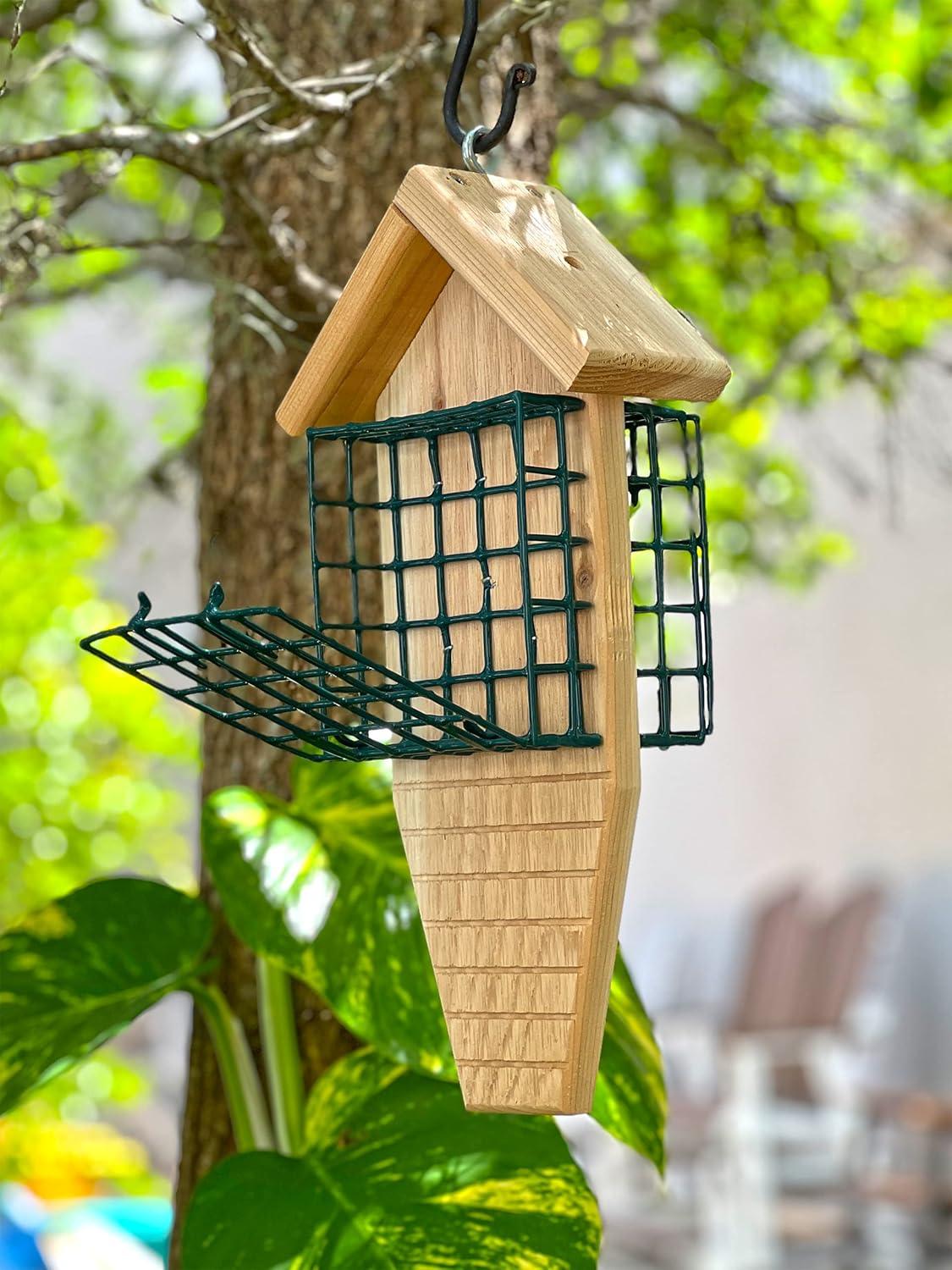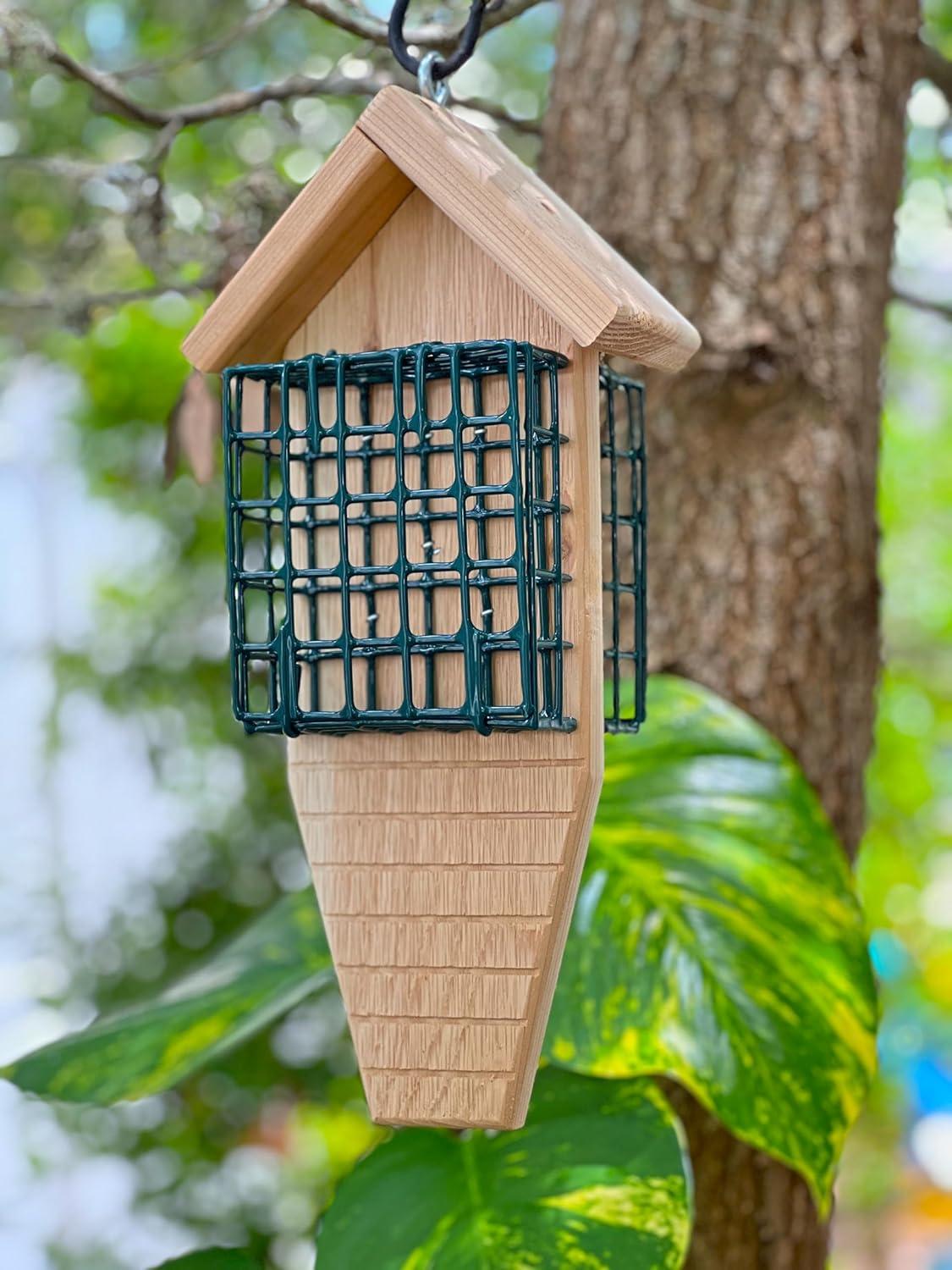 Wood Design: Crafted from Unfinished Cedar Wood. Cedar is Naturally Resistant to Bugs and Rot Making it Ideal for Outdoor Use. Place in a Dry Area to Extend Life of the Bird Feeder