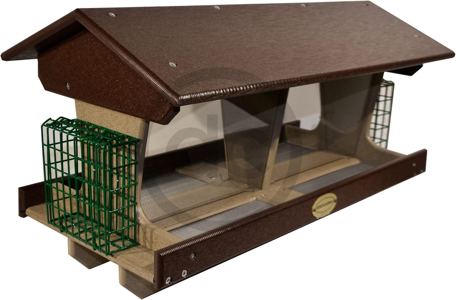 DutchCrafters Large Poly Plastic Bird Feeders for Outdoors with Two Suet Cages, Outdoor Bird Feeder for Wild Birds, Holds 2 Suet Cakes and Seed - USA Amish Made (Turf Green & Cedar)(Milwaukee Brown & Weatherwood)