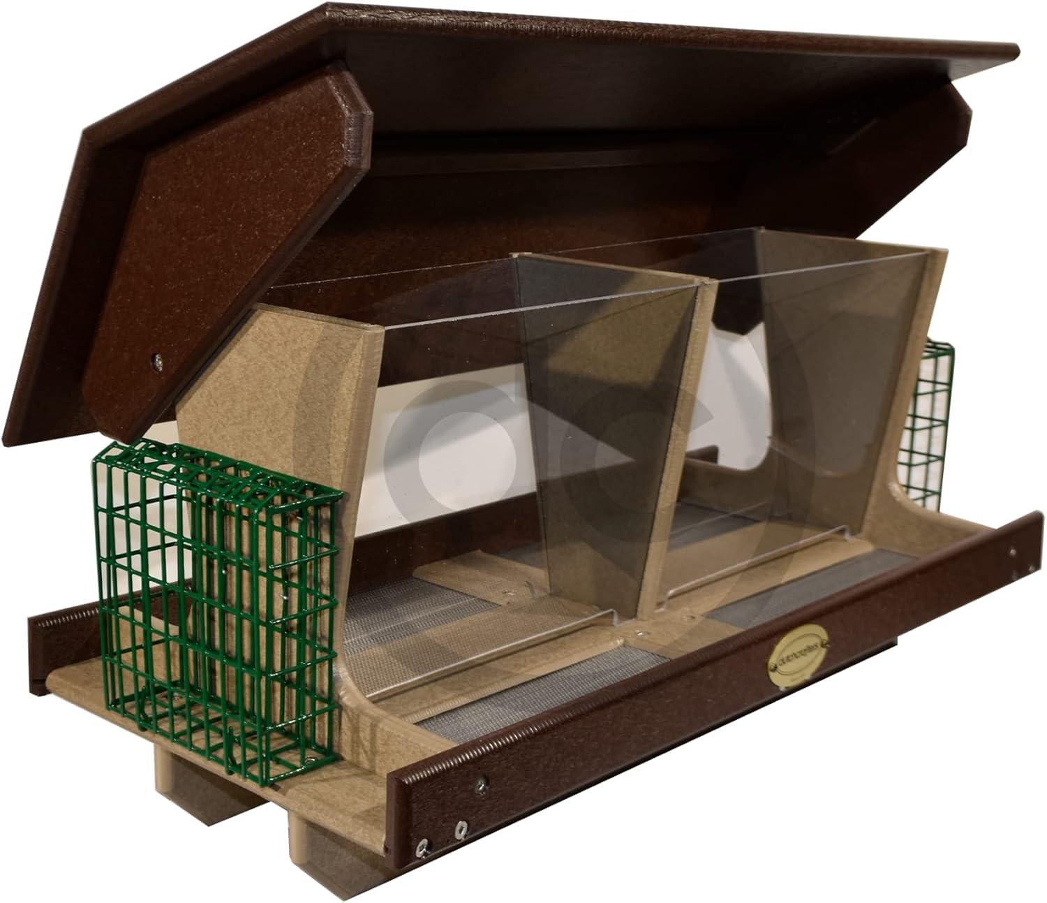 imageDutchCrafters Large Poly Plastic Bird Feeders for Outdoors with Two Suet Cages Outdoor Bird Feeder for Wild Birds Holds 2 Suet Cakes and Seed  USA Amish Made Turf Green ampamp CedarMilwaukee Brown  Weatherwood