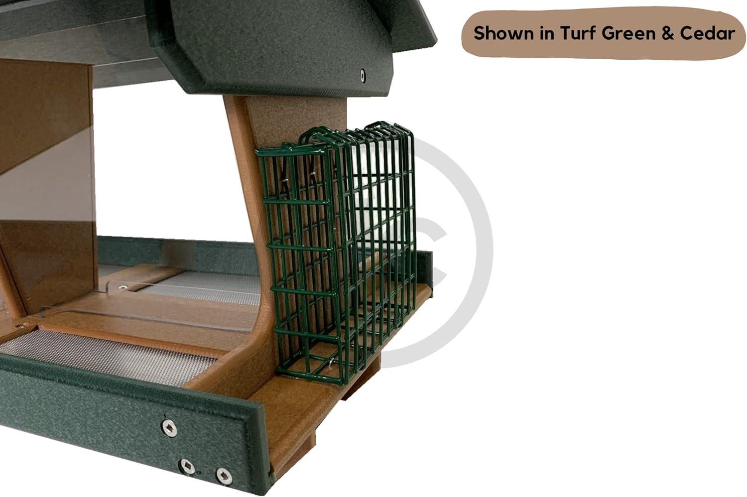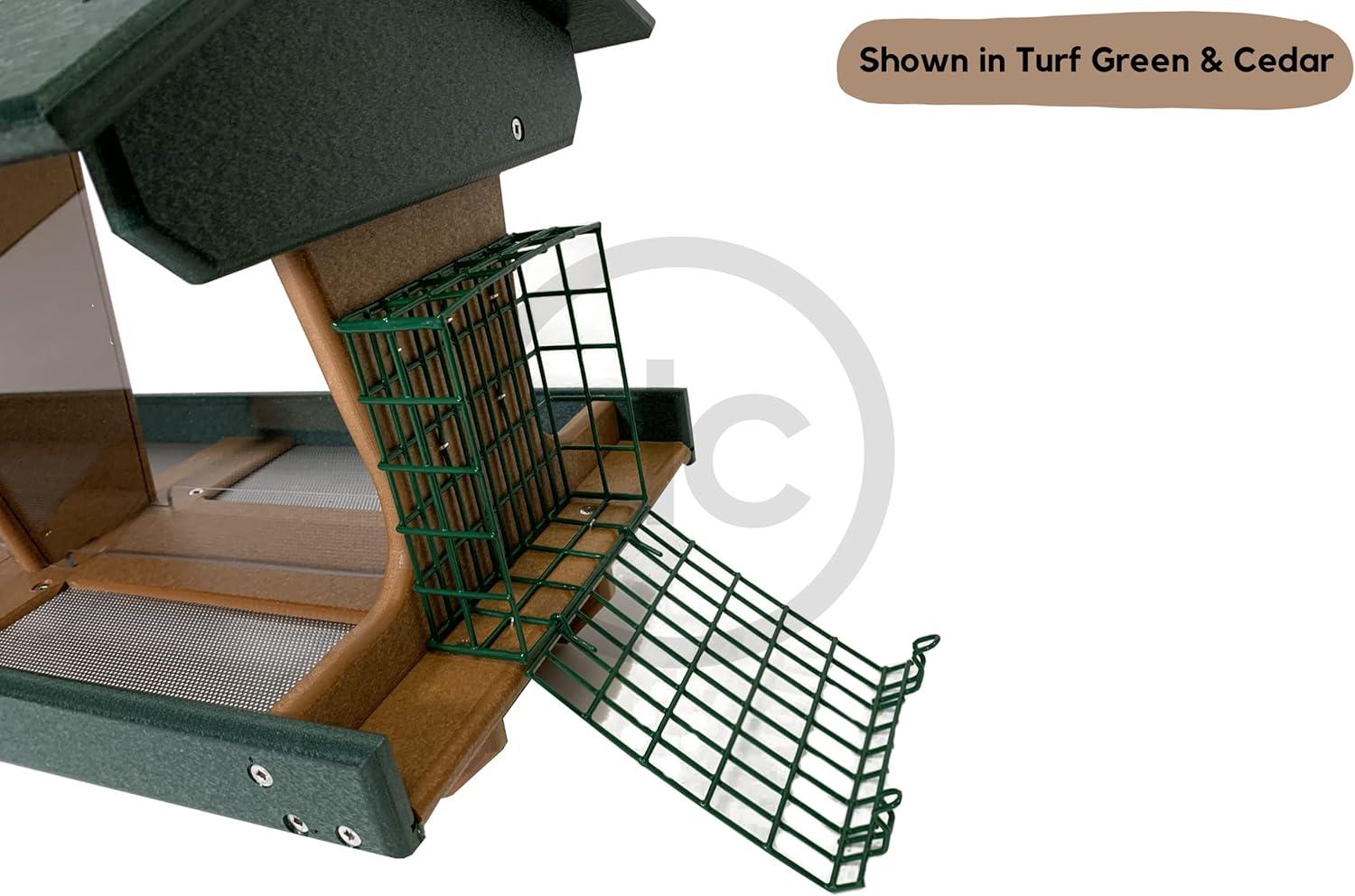 DutchCrafters Large Poly Plastic Bird Feeders for Outdoors with Two Suet Cages, Outdoor Bird Feeder for Wild Birds, Holds 2 Suet Cakes and Seed – USA Amish Made (Turf Green & Cedar)(Turf Green & Cedar)