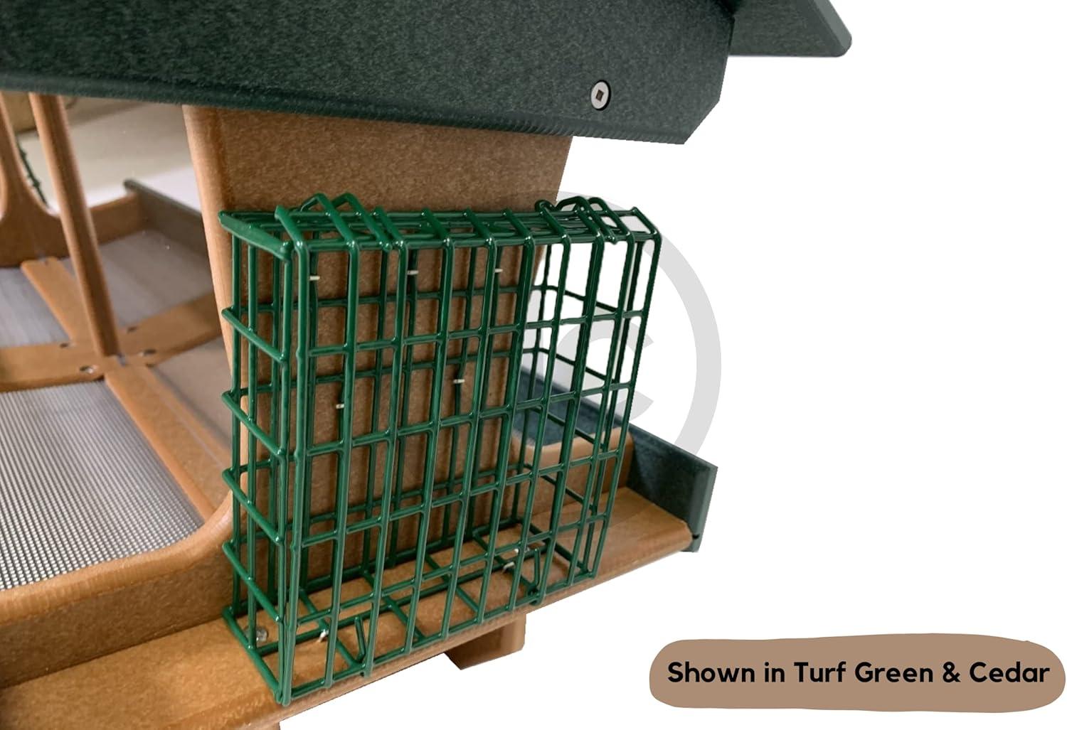 DutchCrafters Large Poly Plastic Bird Feeders for Outdoors with Two Suet Cages, Outdoor Bird Feeder for Wild Birds, Holds 2 Suet Cakes and Seed – USA Amish Made (Turf Green & Cedar)(Turf Green)