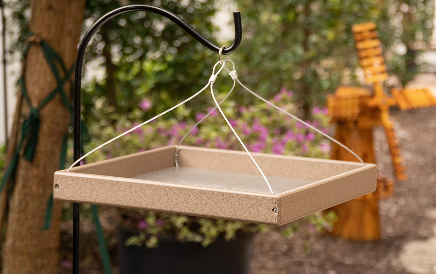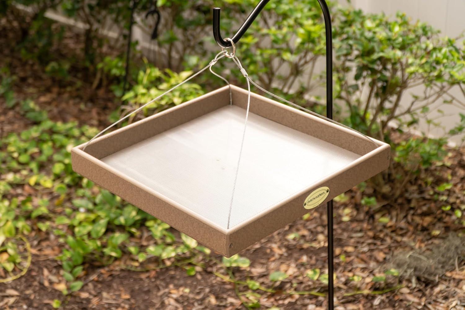 Features: This Simple Bird Feeding Station has a Stainless Steel Hanging Wire Mount, Aluminum Mesh Bottom and is a Large Size. Dimensions: 16″ x 16″ x 2″, Weight: 3.25 lb