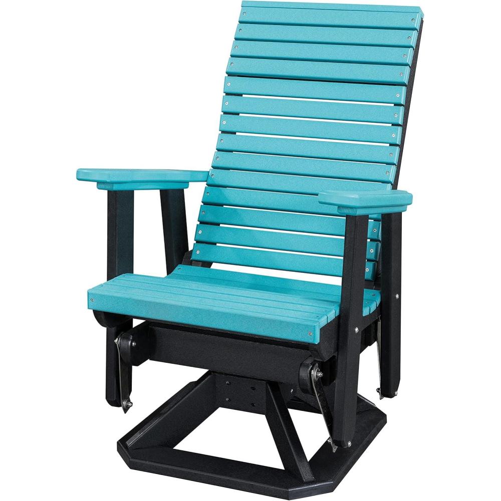 DutchCrafters Modern Horizontal Slat High Back Poly Adirondack Swivel Glider Outdoor Patio Chair (Black & Light Gray)(Black & Aruba Blue)