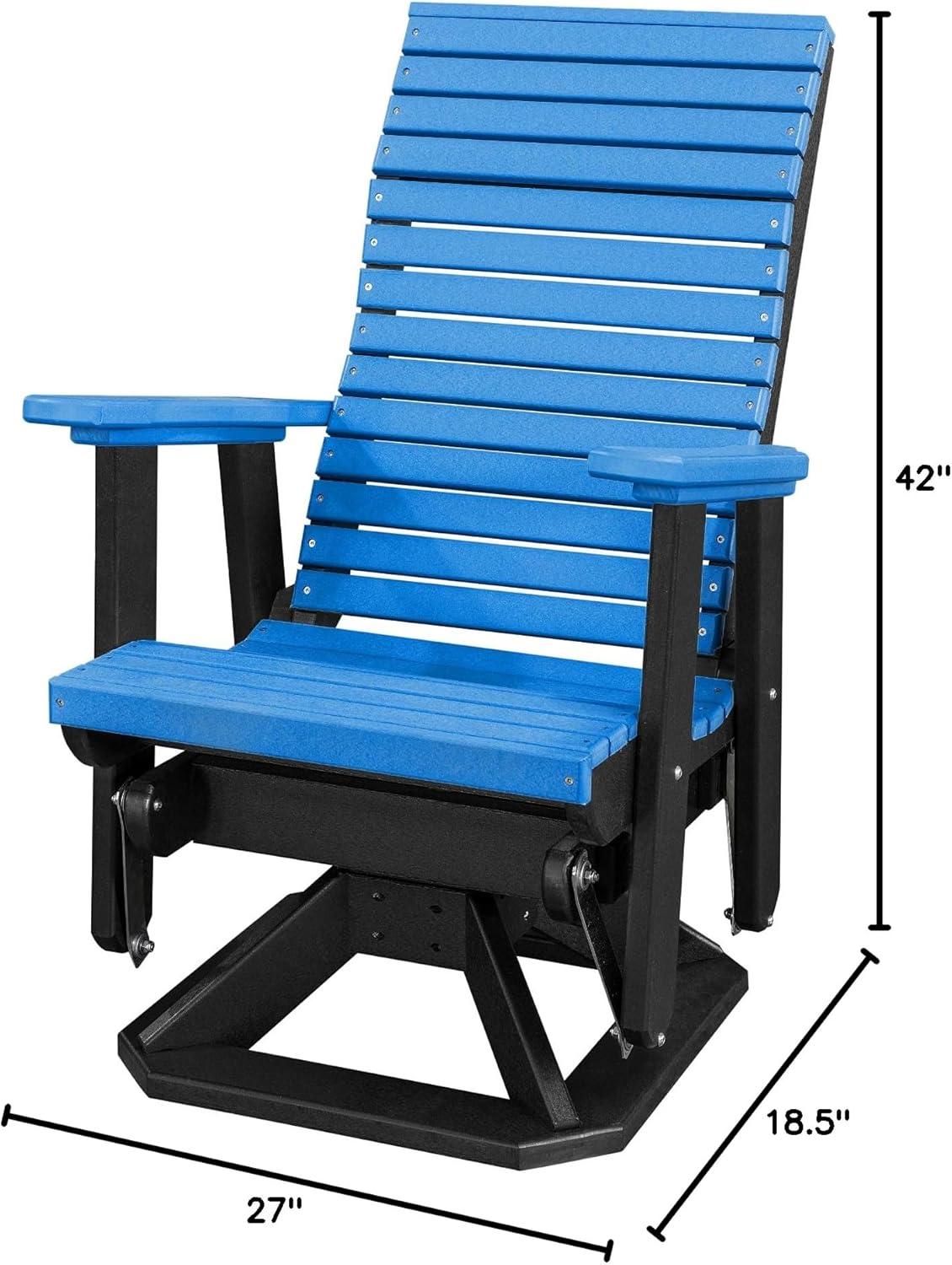 DutchCrafters Modern Horizontal Slat High Back Poly Adirondack Swivel Glider Outdoor Patio Chair (Black & Light Gray)(Black & Blue)