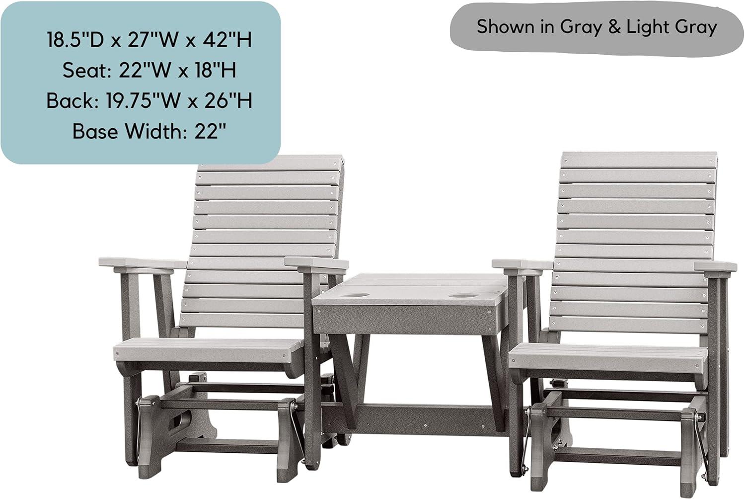 DutchCrafters Modern Horizontal Slat High Back Poly Double Glider Chairs with Center Table Outdoor Patio Furniture (Black & Weatherwood)(Gray &Light Gray)