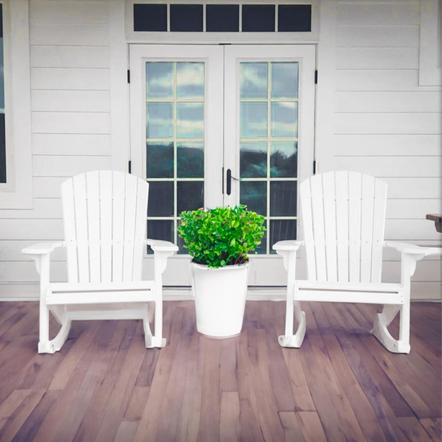 The ergonomic Adirondack porch rocker is perfect for relaxing on your front or back patio, porch, or lawn. This durable outdoor chair is constructed of high-quality poly lumber, made from recycled plastics, which is designed to withstand the elements and provide years of comfortable seating. The patio chair's gentle and soothing rocking motion makes it ideal for reading a book or enjoying a glass of wine. Easy to assemble in just minutes, it includes stainless steel hardware for lasting performance. This classic outdoor furniture piece adds style and comfort to your garden, balcony, or outdoor living space. Choose your favorite color to match your patio decor and enjoy relaxing in this Adirondack style patio rocker!