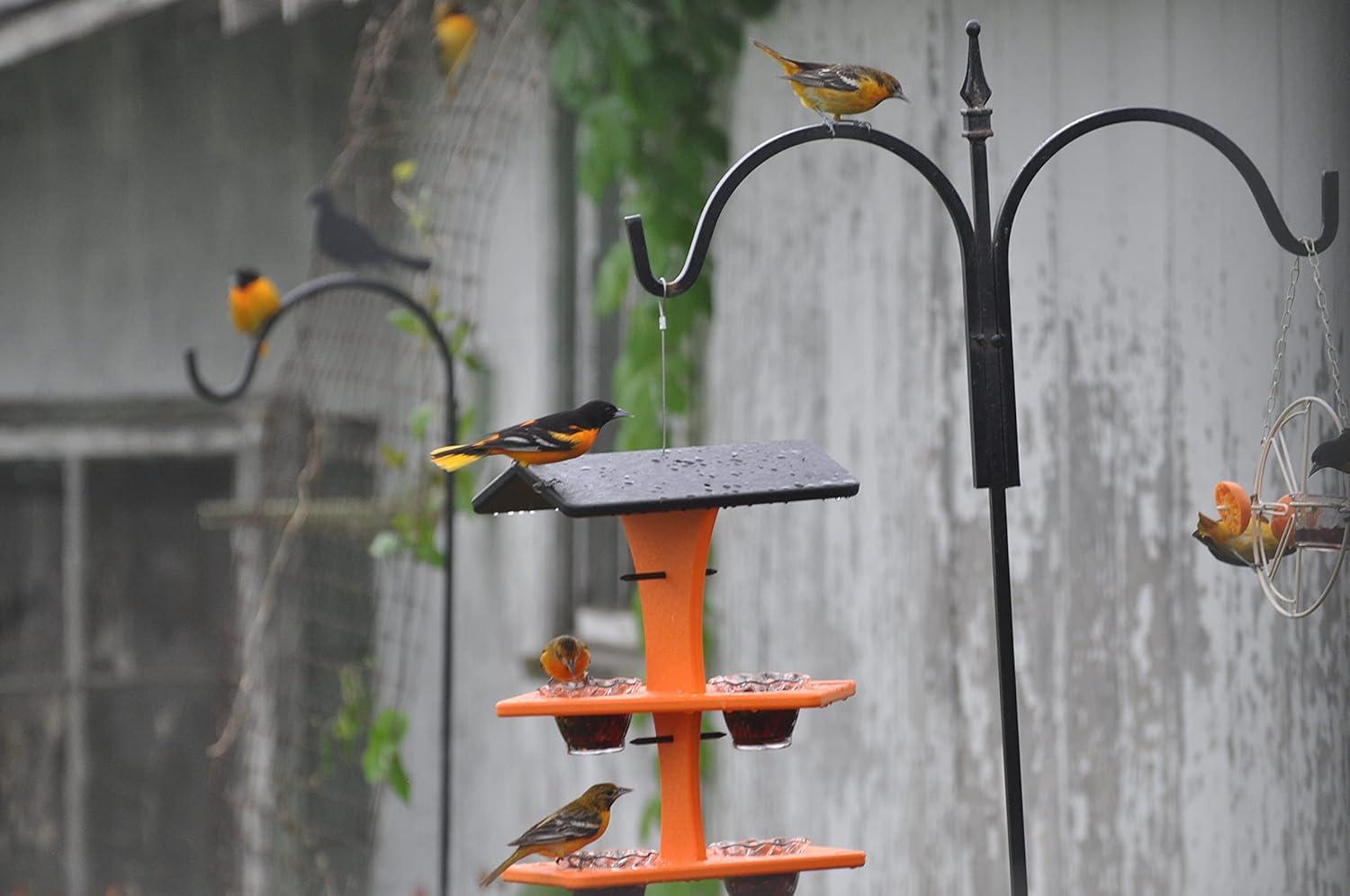 DutchCrafters Plastic Poly Double Platform Hanging Oriole Bird Feeder with Fruit Slice Holders & Nectar Cups, Jelly Bird Feeders for Outside – Amish Made in USA (Triple, Black & Bright Orange)(Black & Bright Orange)