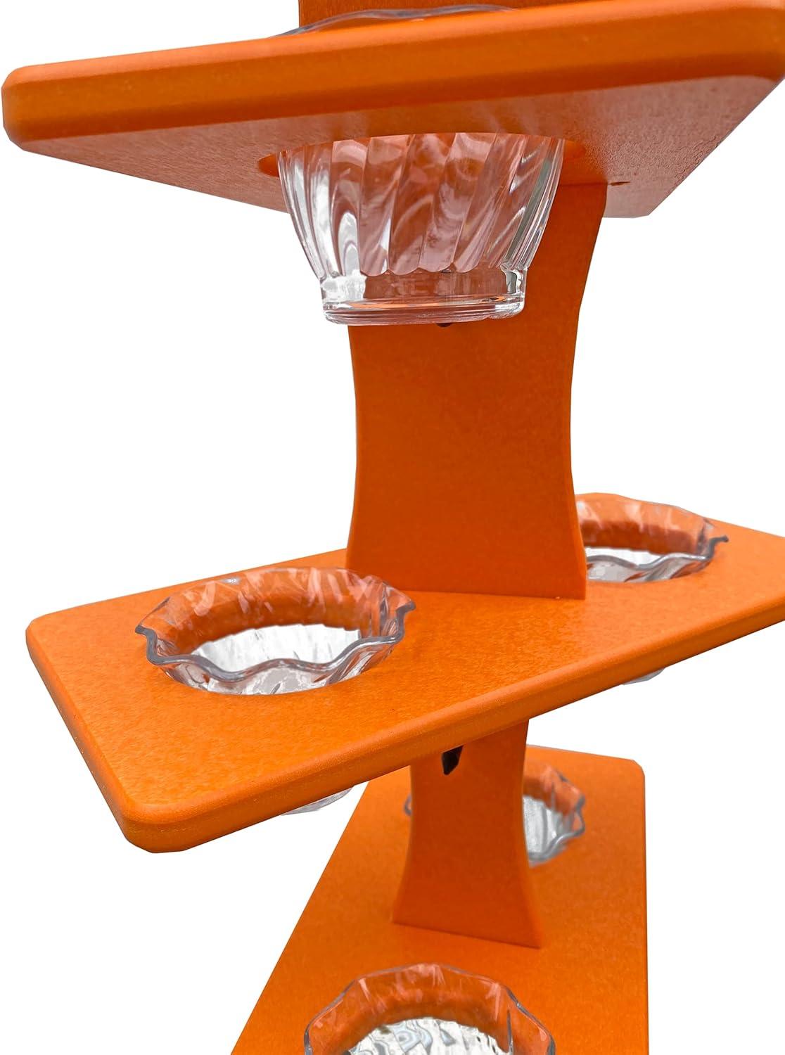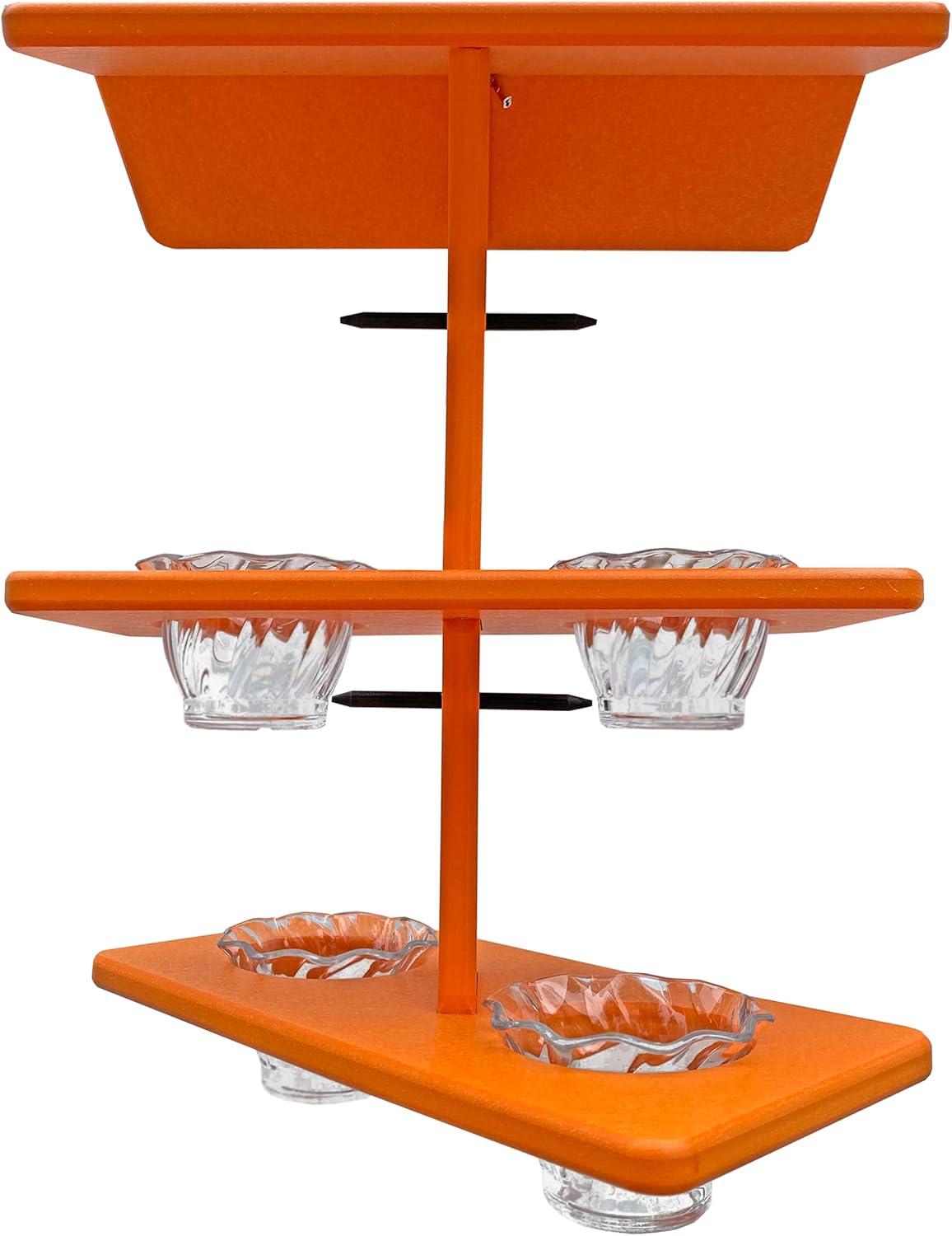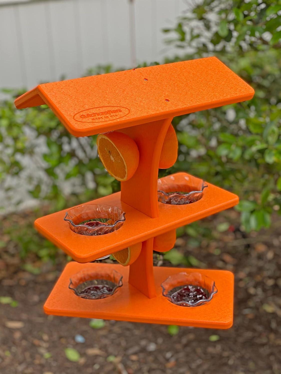 DutchCrafters Plastic Poly Double Platform Hanging Oriole Bird Feeder with Fruit Slice Holders & Nectar Cups, Jelly Bird Feeders for Outside – Amish Made in USA (Triple, Black & Bright Orange)(Bright Orange)