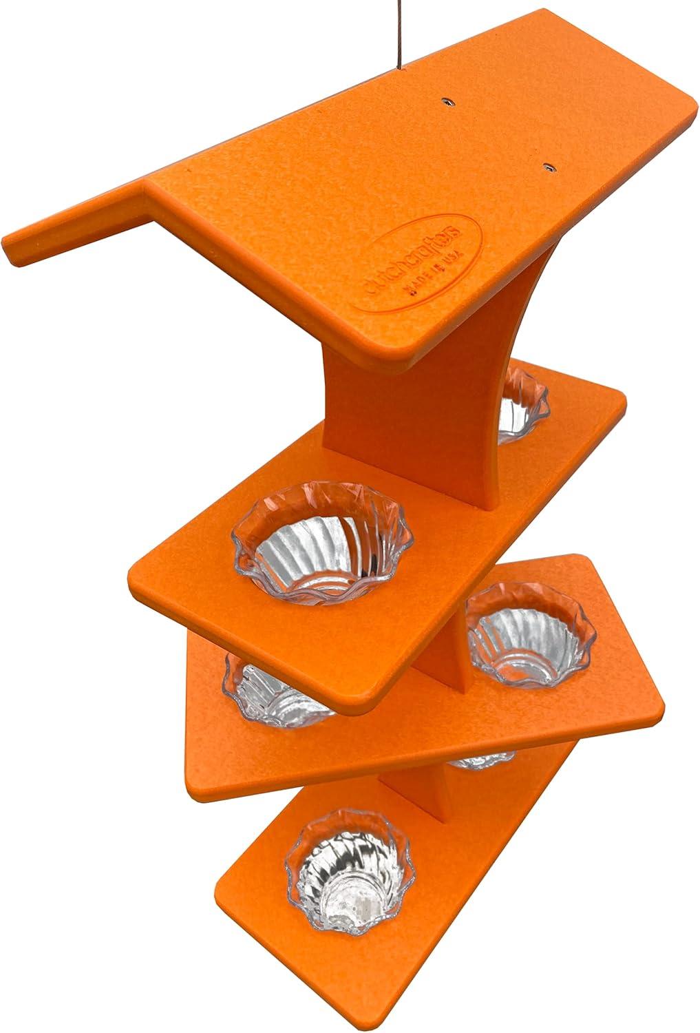 DutchCrafters Plastic Poly Double Platform Hanging Oriole Bird Feeder with Fruit Slice Holders & Nectar Cups, Jelly Bird Feeders for Outside - Amish Made in USA (Triple, Black & Bright Orange)(Bright Orange)