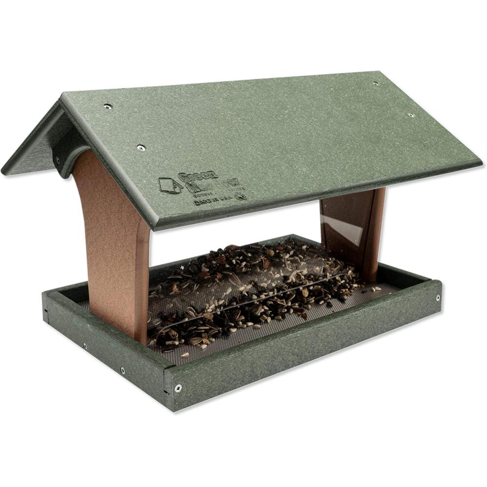 imageDutchCrafters Plastic Poly Hanging Hopper Bird Feeder Large Capacity Silo Bird Feeder AllWeather Feeding Station for Outdoors  Amish Made in USA Turf Green ampamp Cherry WoodTurf Green  Cherry Wood