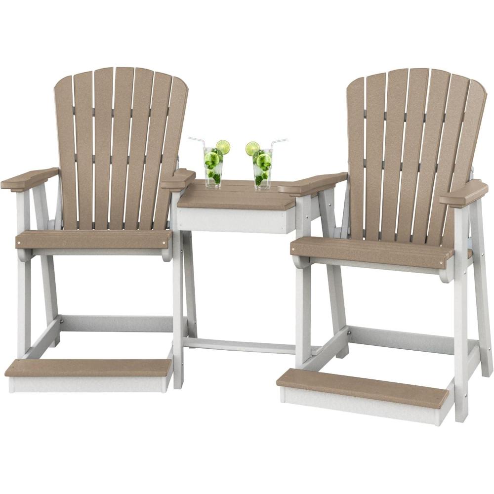 Classic Design: Adirondack Style Chairs Feature a Contoured Back, Sloped Seat and Reclined Position that Provides Support and Relaxation. Features a Connected Middle Table, Wide Armrests and Raised Footrest for Ease and Comfort