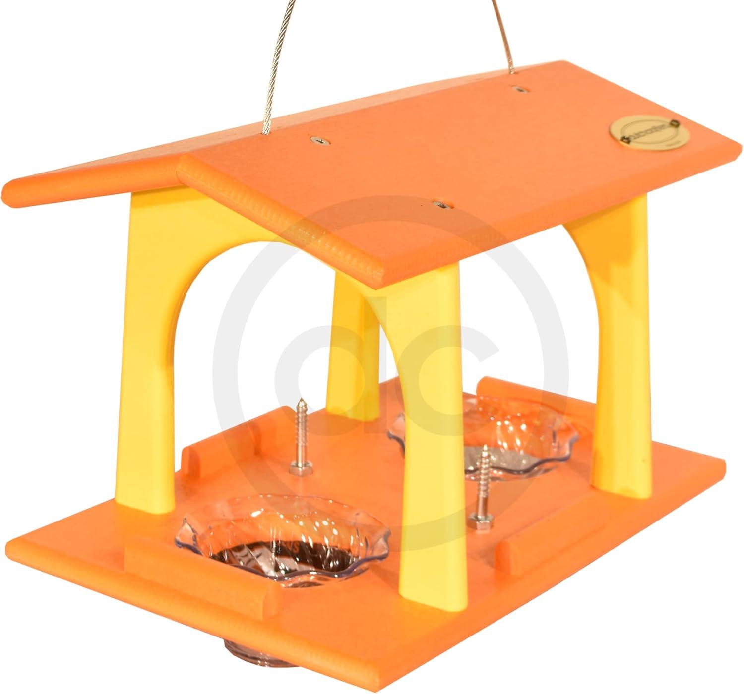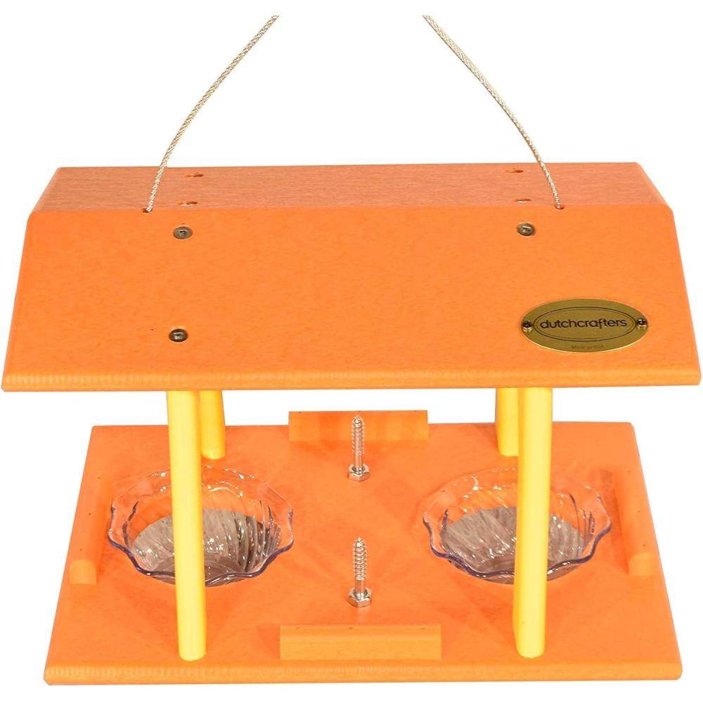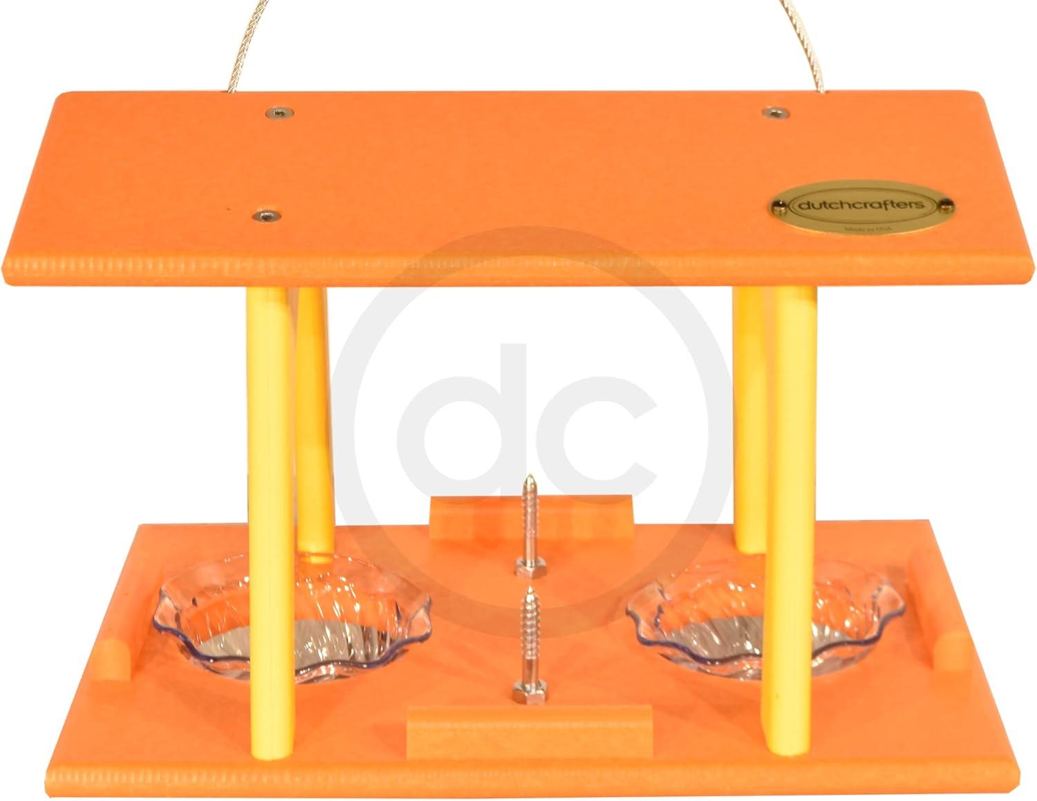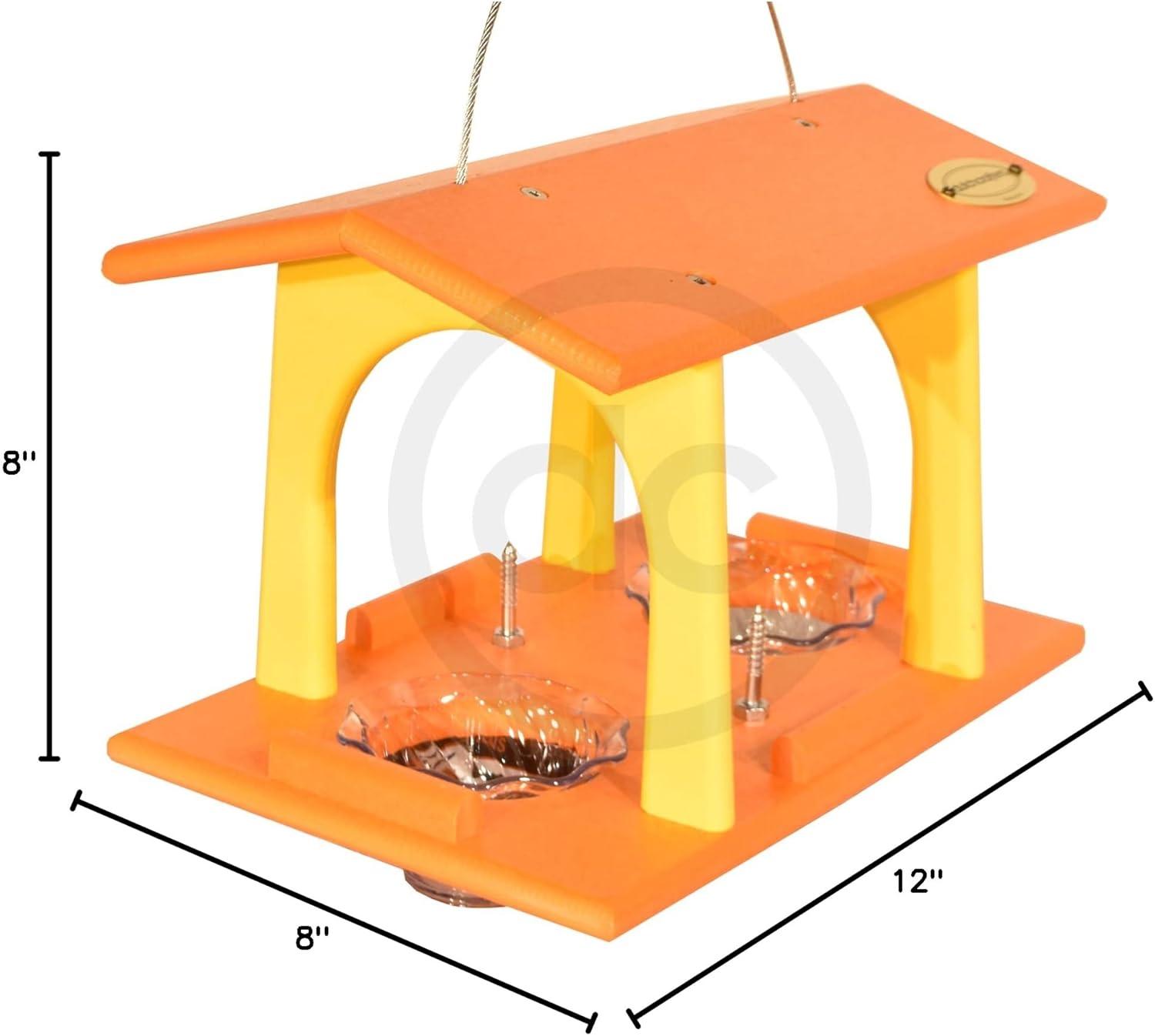 DutchCrafters Plastic Poly Single Oriole Bird Feeder, Outdoor Hanging Bird Feeder with 1 Acrylic Cup for Jelly or Jam, Fruit, Nectar or Seed for Orioles (Single, Orange)(Orange & Yellow)