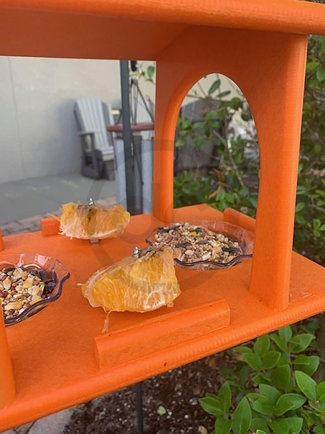 Features: Hanging Mount to Hang from a Tree or Hook. Jelly Cups & Fruit Slice Holder. Choose from Single, Double, or Triple Style. The Compact Size of the Oriole Jelly Feeder is Perfect for Areas with Limited Space