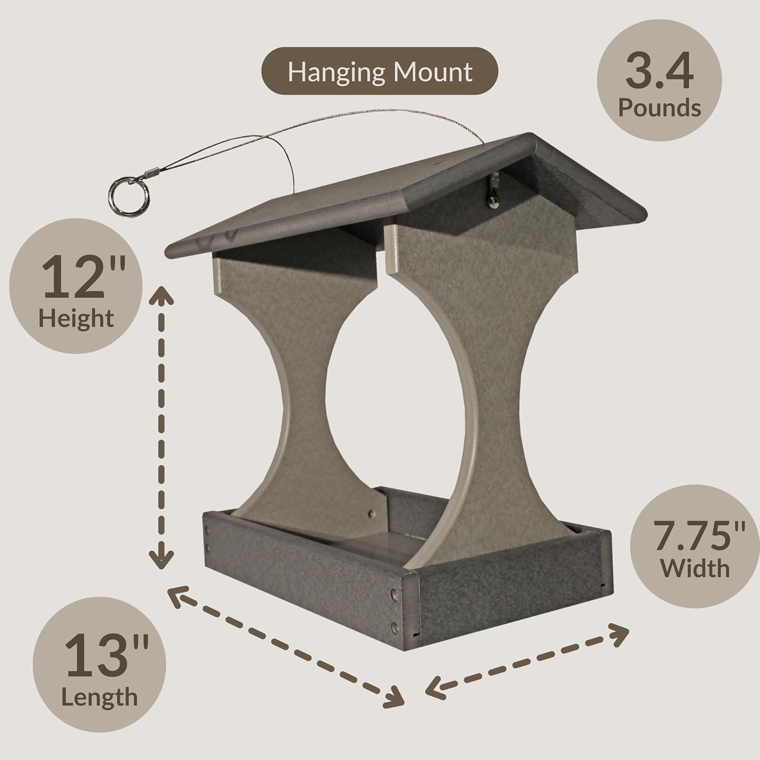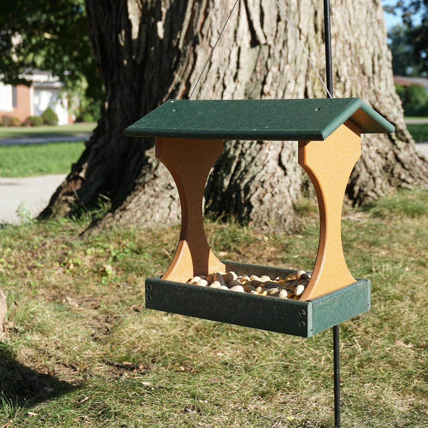 DURABLE: Crafted in the United States using top-tier poly lumber designed for lifelong durability. Includes a stainless steel hanging cable and and aluminum mesh bottom with drainage holes, ensuring seed stays dry