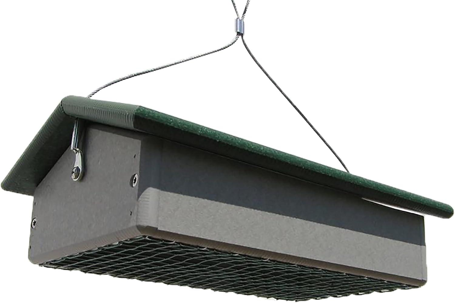 DutchCrafters Plastic Poly Upside Down Suet Feeder for Birds, Outside Hanging Two Suet Cake Holder Bird Feeder for Outdoors – Amish Made in USA (Turf Green)(Turf Green)