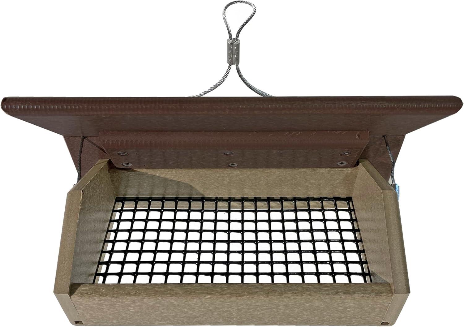 DURABLE CONSTRUCTION: Crafted from recycled HDPE plastic poly lumber, this plastic bird feeder is weather-resistant and long-lasting. Features stainless steel hardware for added durability in outdoor conditions.