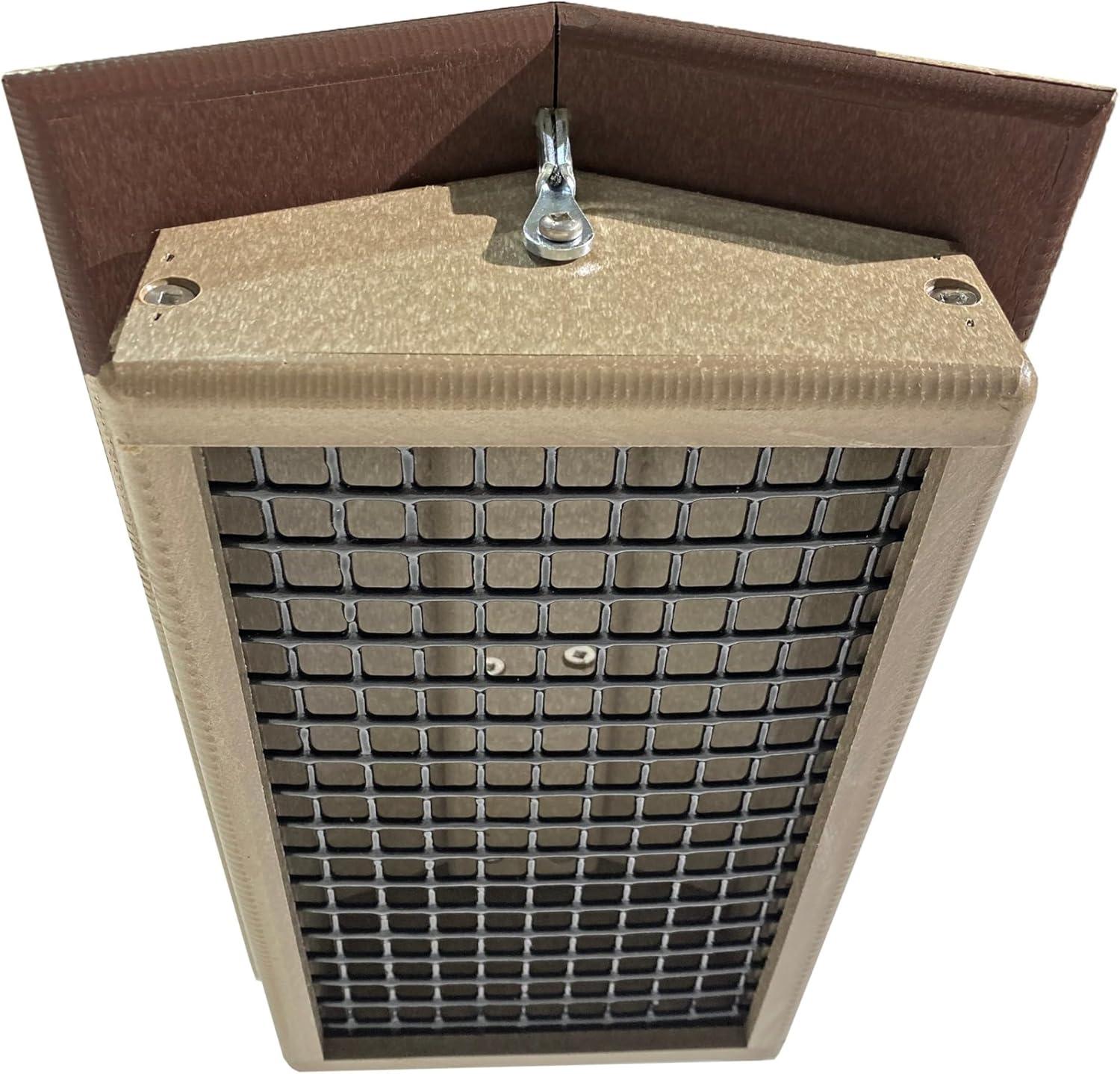 LARGE CAPACITY: Measures 10″L x 12″W x 4″H and weighs 4 lbs. This large hanging feeder can hold two 1-pound suet cakes or seed blocks, reducing the need for frequent refilling and providing ample food for wild birds.