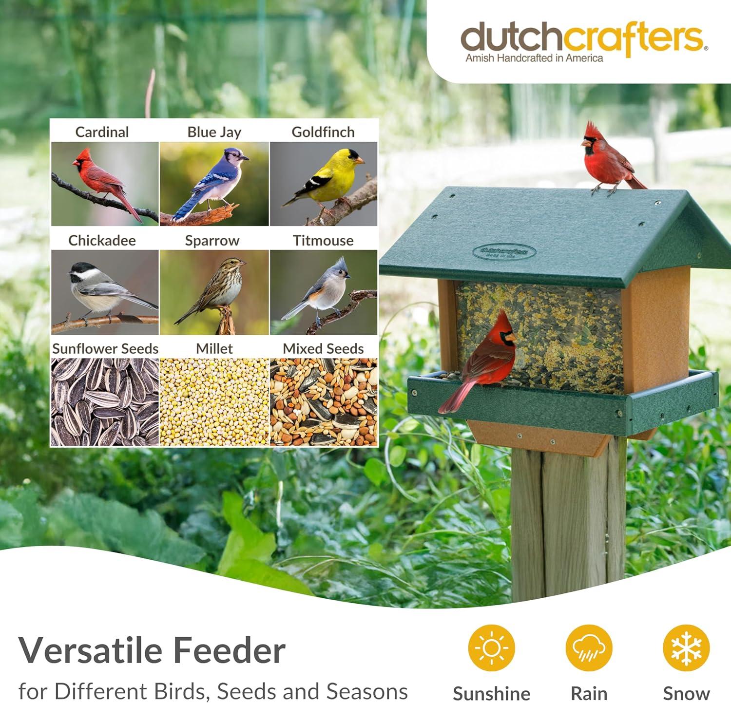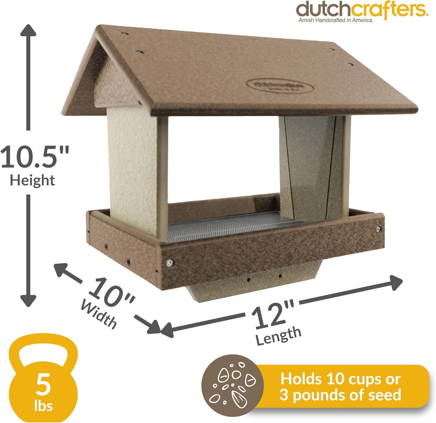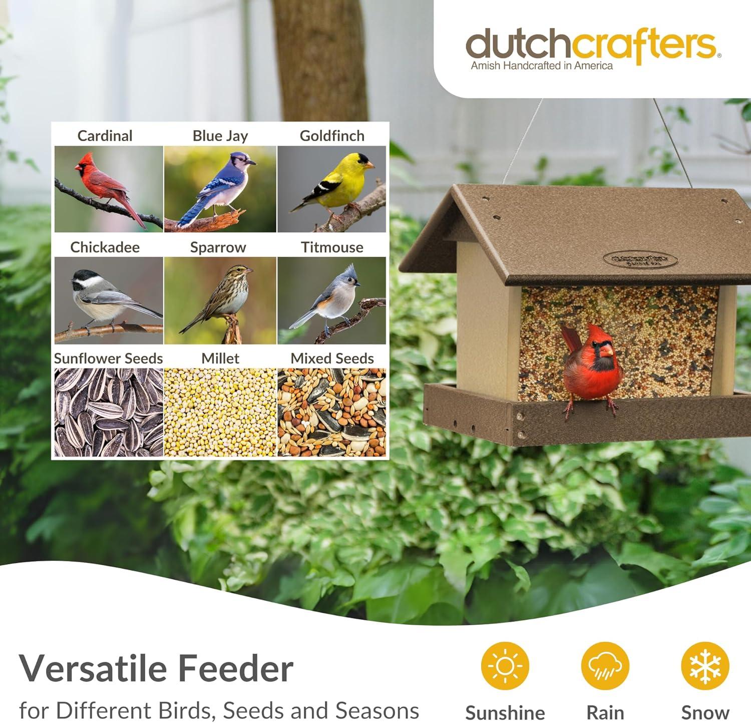 DutchCrafters Poly Hanging Hopper Bird Feeder, Large Hanging Bird Feeder for Outside, Outdoors - Amish American Made (Turf Green & Cedar)(Tudor Brown & Weatherwood)