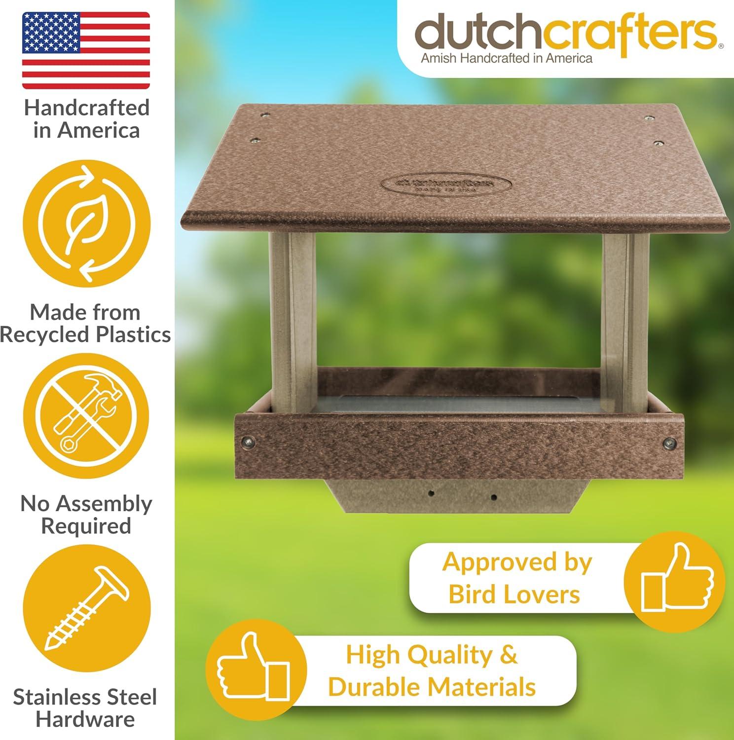 imageDutchCrafters Plastic Poly Covered Roof Hanging Fly Through Bird Feeder Open Side Platform Seed Tray for Outside Outdoor Garden  Amish American Made in USA Tudor Brown ampamp WeatherwoodTudor Brown  Weatherwood
