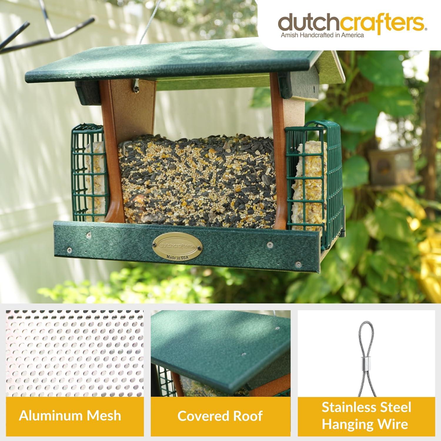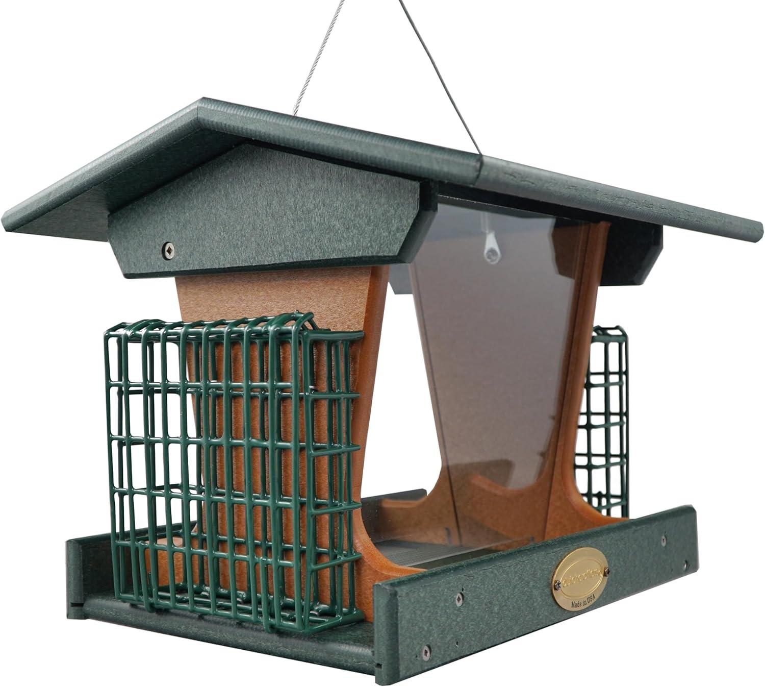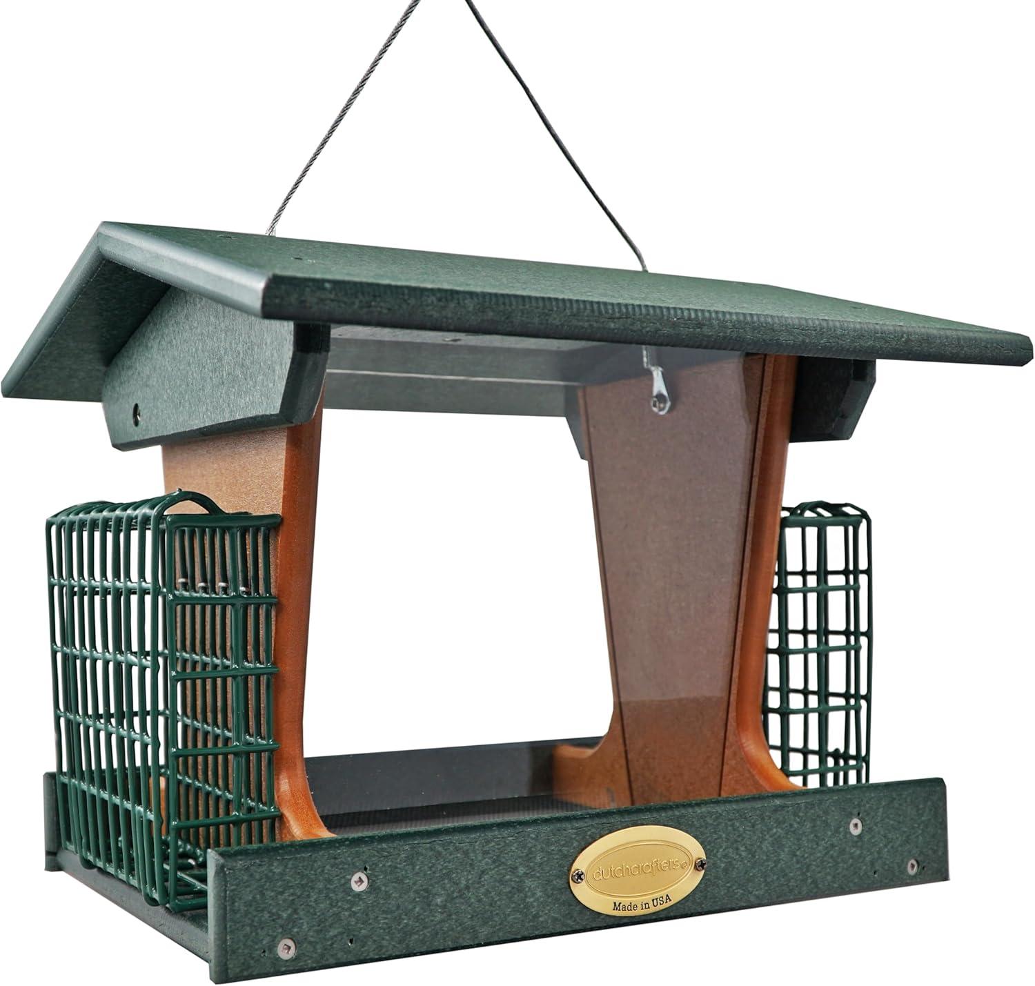 Made in USA – Our poly bird feeder is proudly made in America using high-quality materials. Each extra large bird feeder with suet cages is carefully crafted by a skilled craftsman in Indiana. Our hopper feeders for birds embody our dedication to local craftsmanship and superior quality