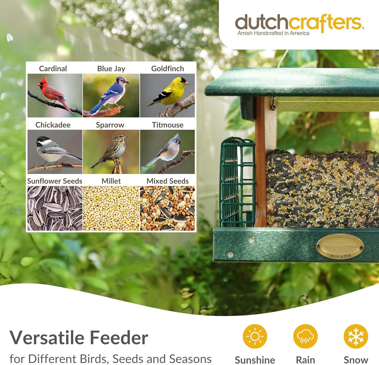 Hopper Feeder – This hopper-style large hanging bird feeder is designed to use with a variety of wild bird seed, sunflower bird seed, safflower bird seed, songbird bird seed and mixed seed blends. Ideal bird feeder for cardinals, finches, chickadees, and sparrows
