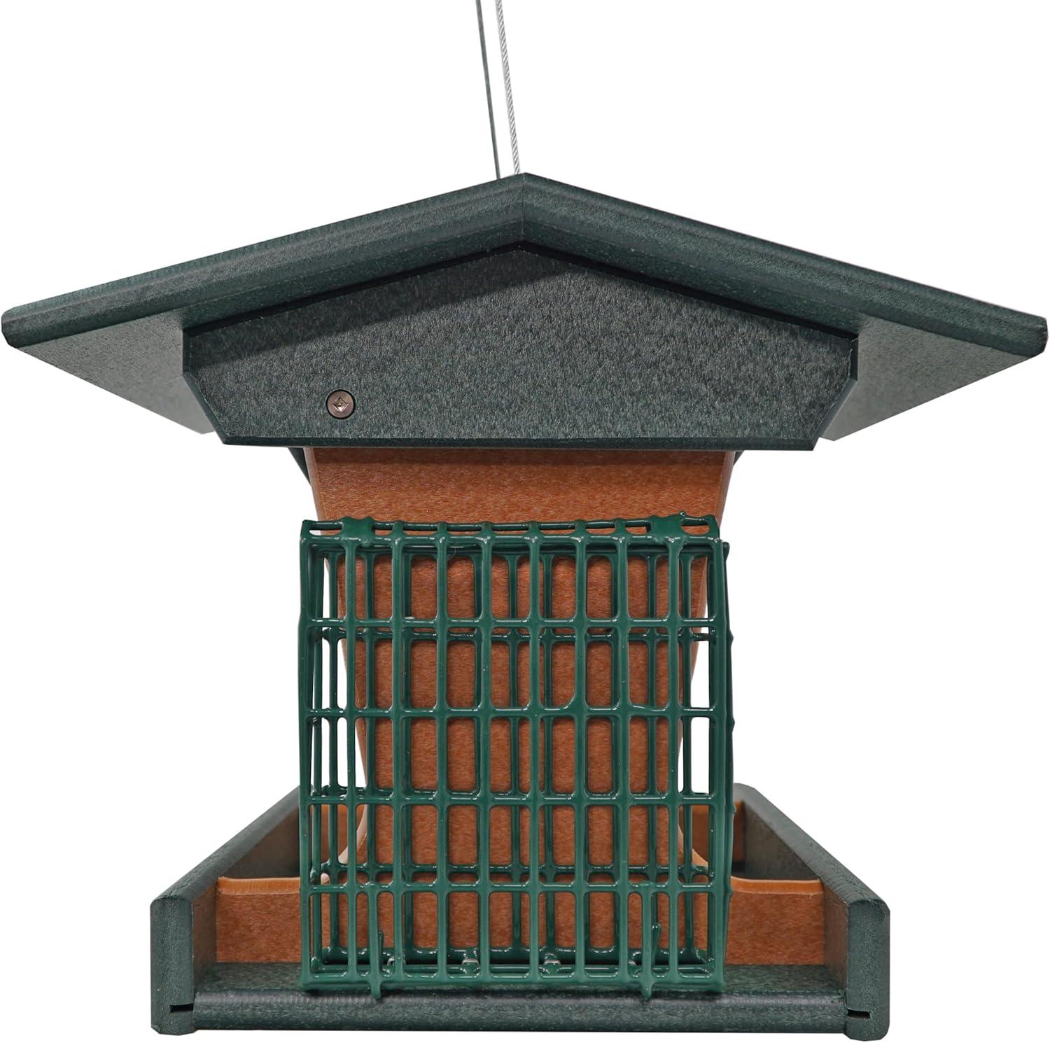 Heavy Duty Bird Feeder – Our wild bird feeders are crafted from HDPE recycled plastic poly lumber that is water resistant, durable and long lasting. Our hanging bird feeders for outdoors have a stainless steel hanging wire and hardware to prevent rust. Our hanging feeder is perfect for your backyard, garden, deck or balcony