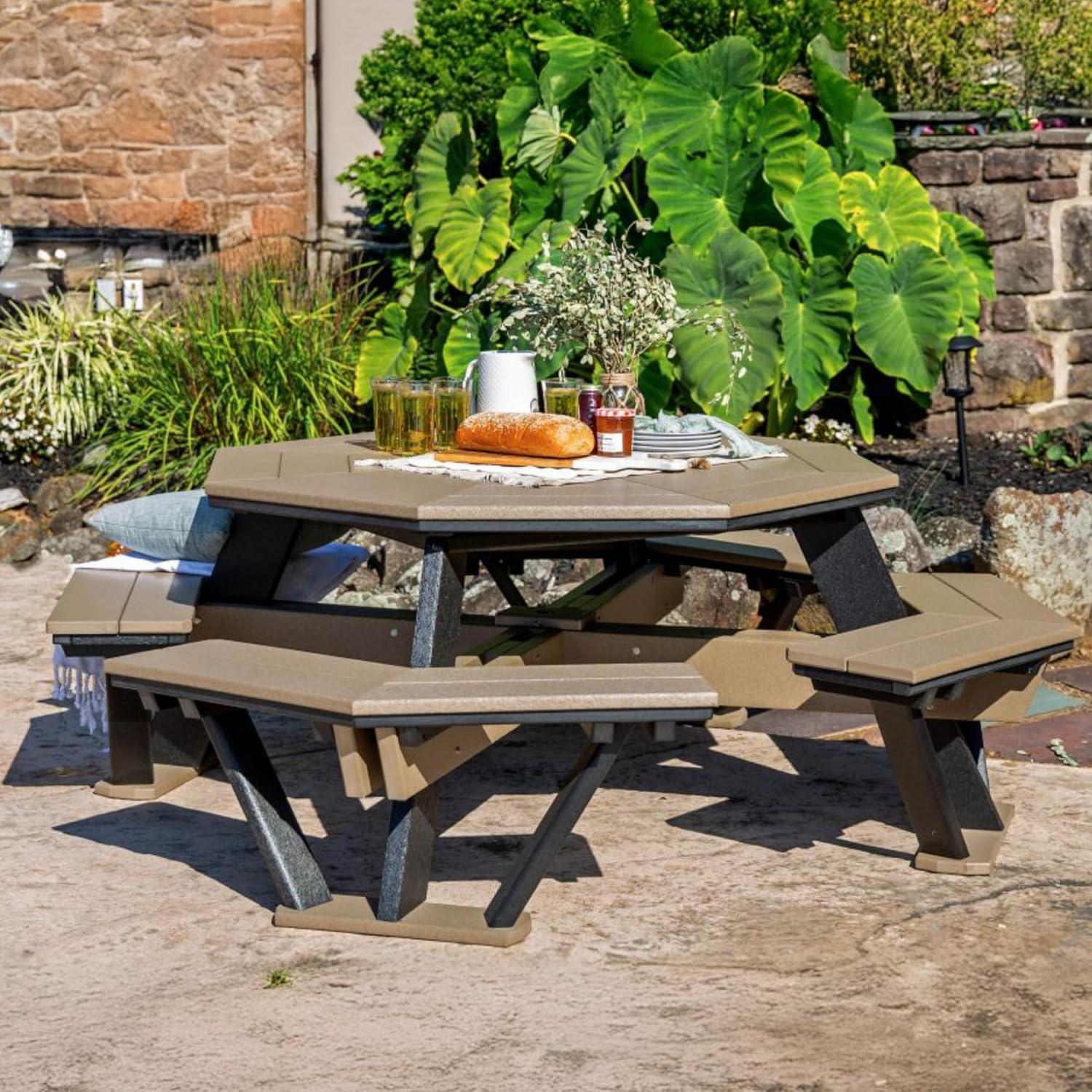 DutchCrafters Poly Patio Picnic Table – Outside Table for Adults & Kids, Seats 8, UV Resistant and Heavy Duty Plastic Tables, Durable Outdoor Furniture, Amish Made in USA