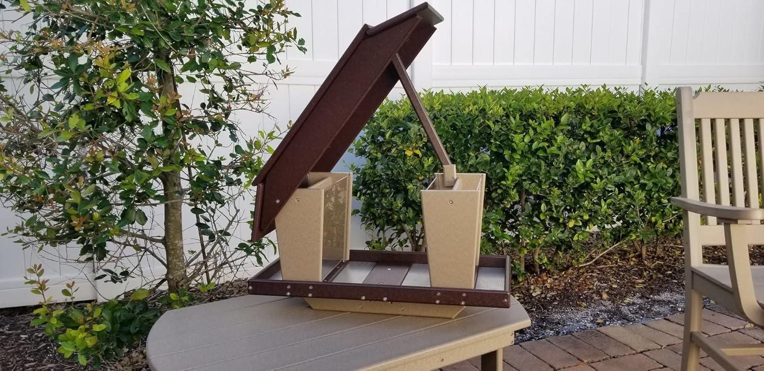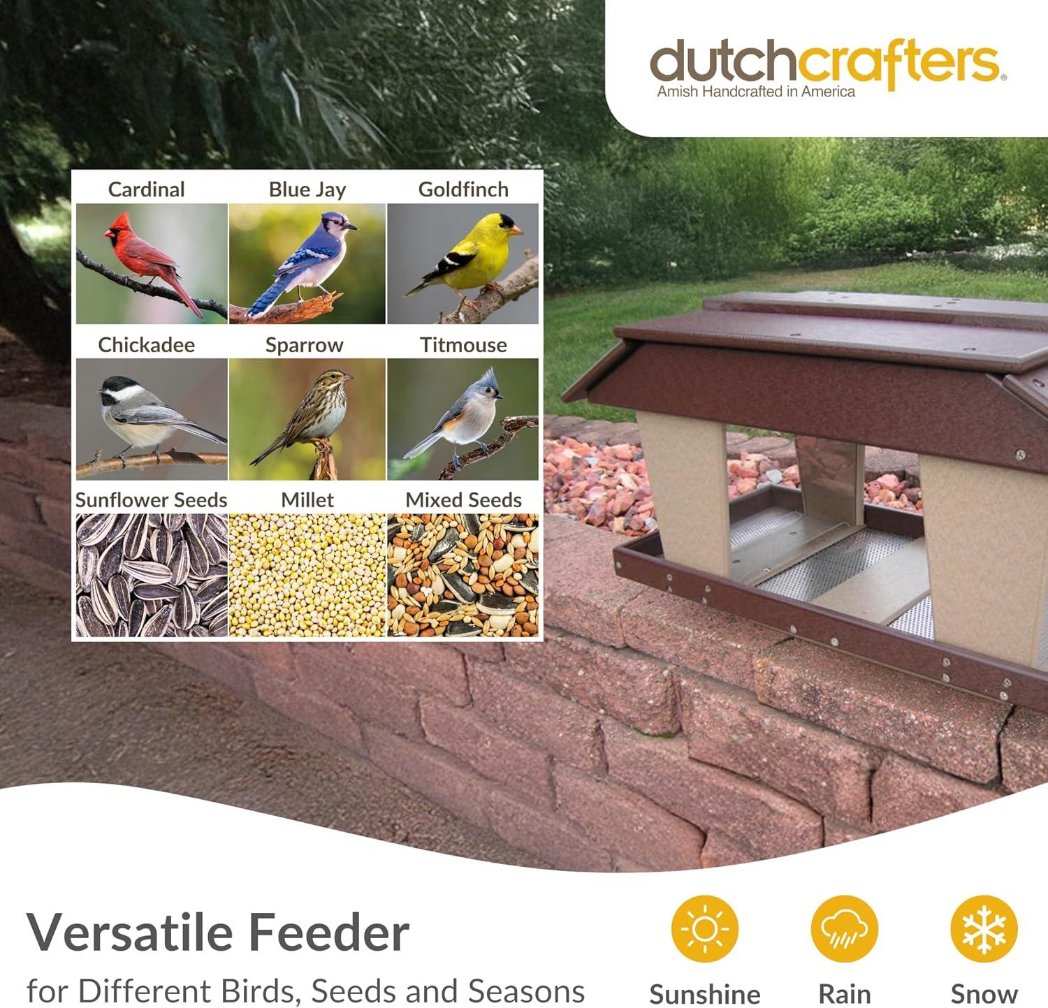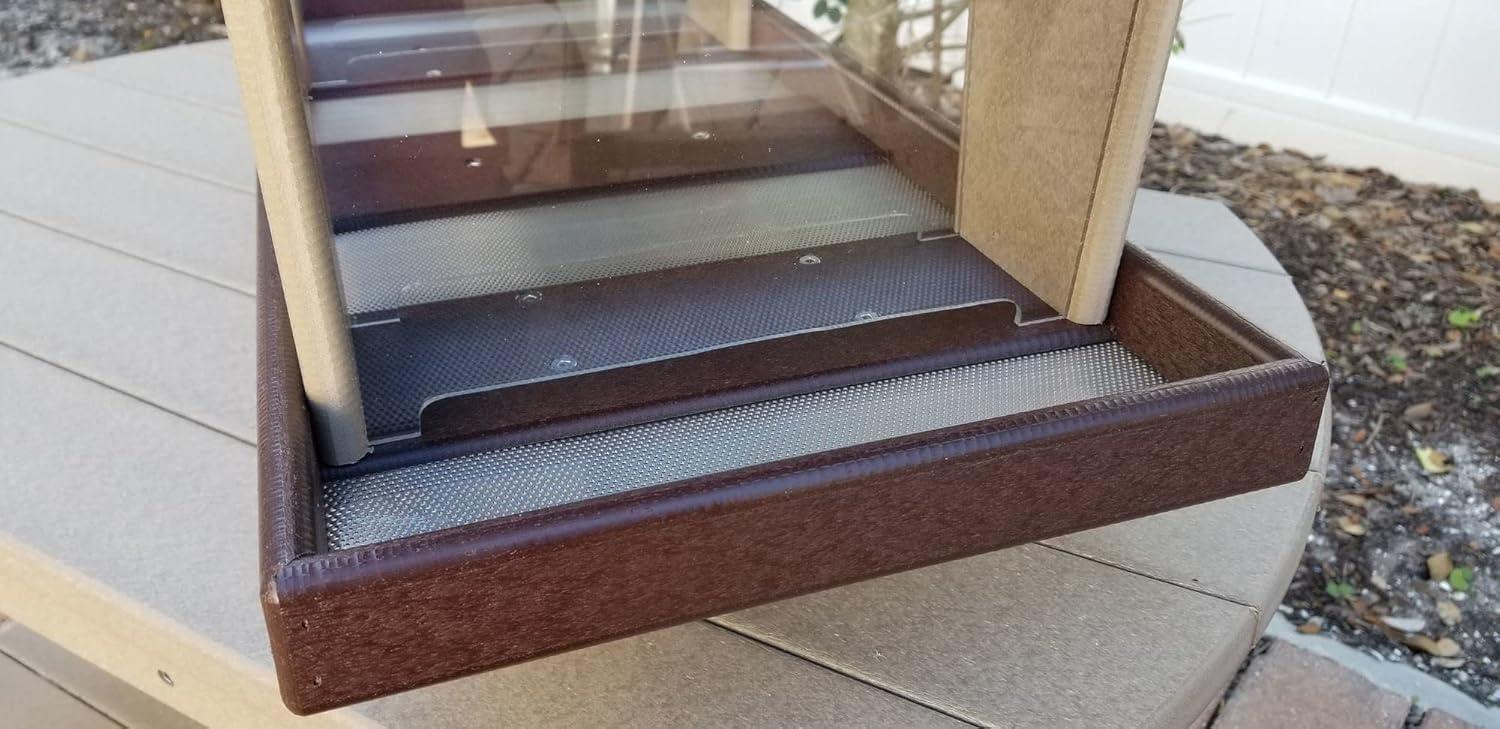Heavy Duty Bird Feeder – Our outdoor bird feeder is crafted from durable HDPE poly lumber that is made from recycled plastics. Our poly outdoor bird feeders are low maintenance and built to last. This covered bird feeder keeps seeds in the hopper dry from rain