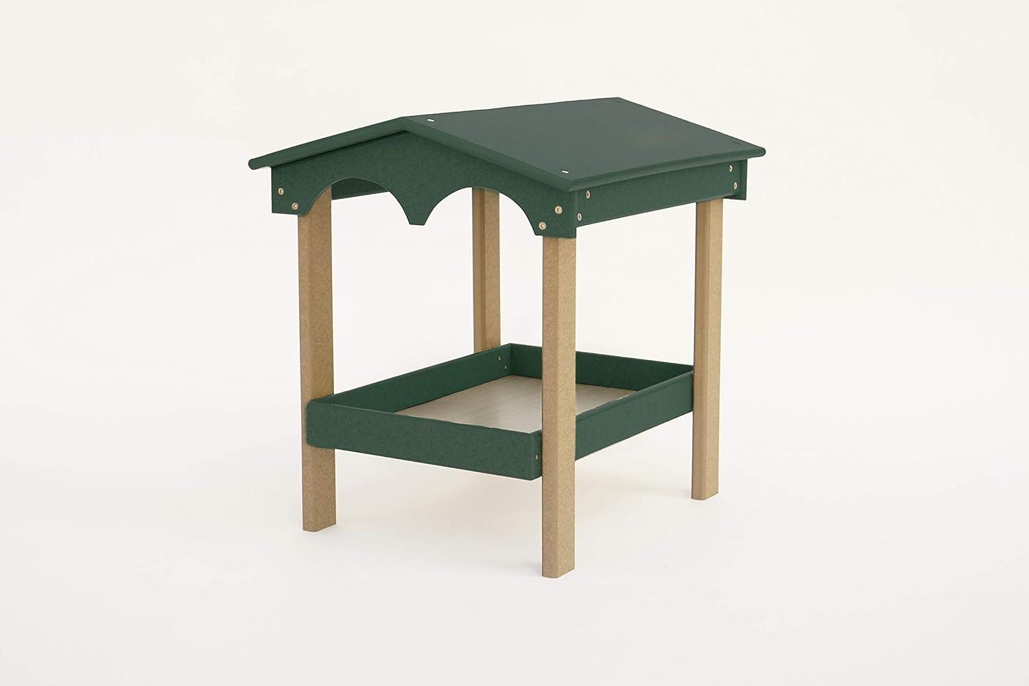 DutchCrafters Recycled Plastic Poly Large Covered Ground Fly Through Raised Platform Bird Feeder with Mesh Seed Tray – USA Amish Made (Turf Green & Weatherwood)(Turf Green & Weatherwood)