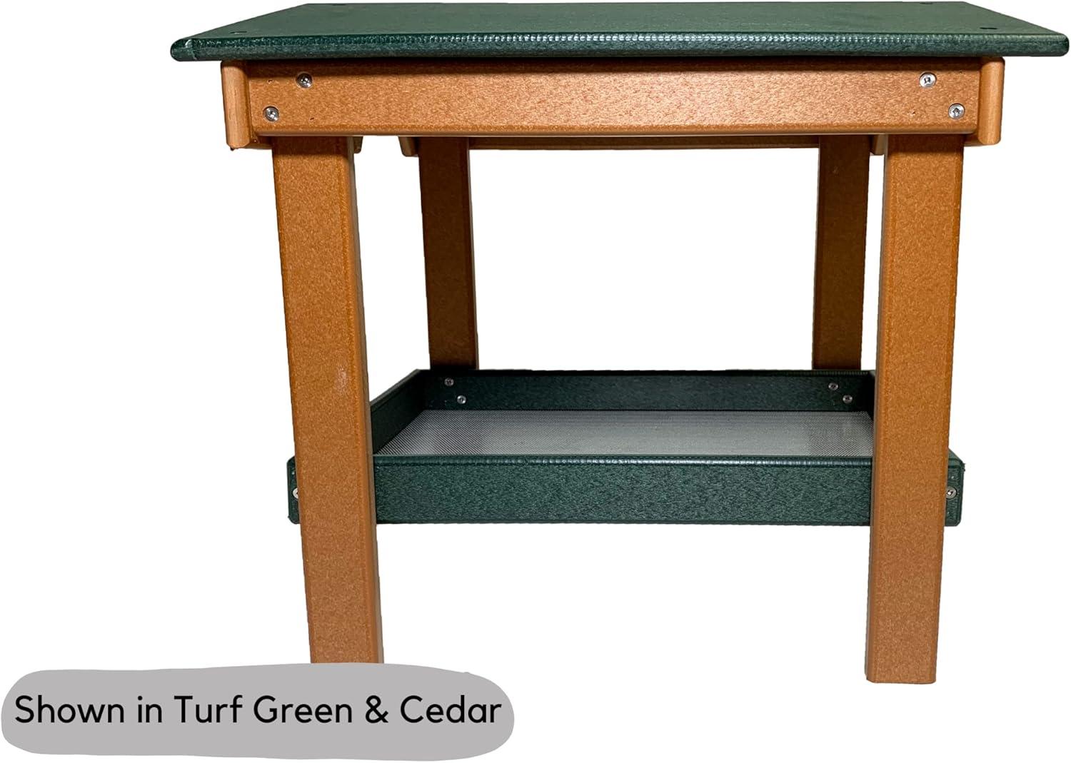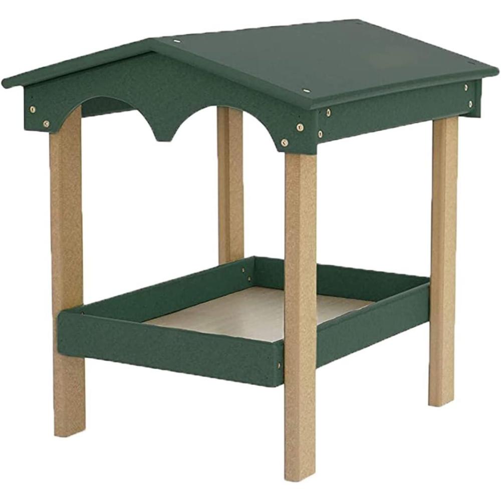 DutchCrafters Recycled Plastic Poly Large Covered Ground Fly Through Raised Platform Bird Feeder with Mesh Seed Tray - USA Amish Made (Turf Green & Weatherwood)(Turf Green & Weatherwood)