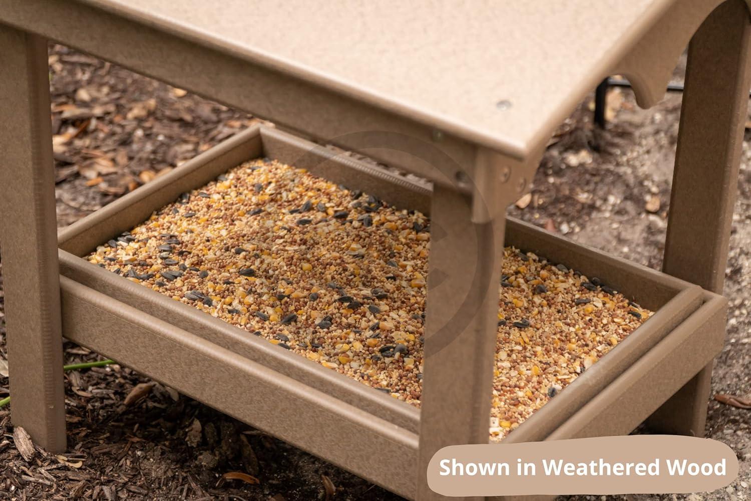 Features: The durable and wide covered roof adds protection against rain and larger animals. The removable tray allows for easy clean up and refilling. The aluminum mesh drainage tray has 1/16″ holes which allow water and debris to pass through while keeping seeds dry.