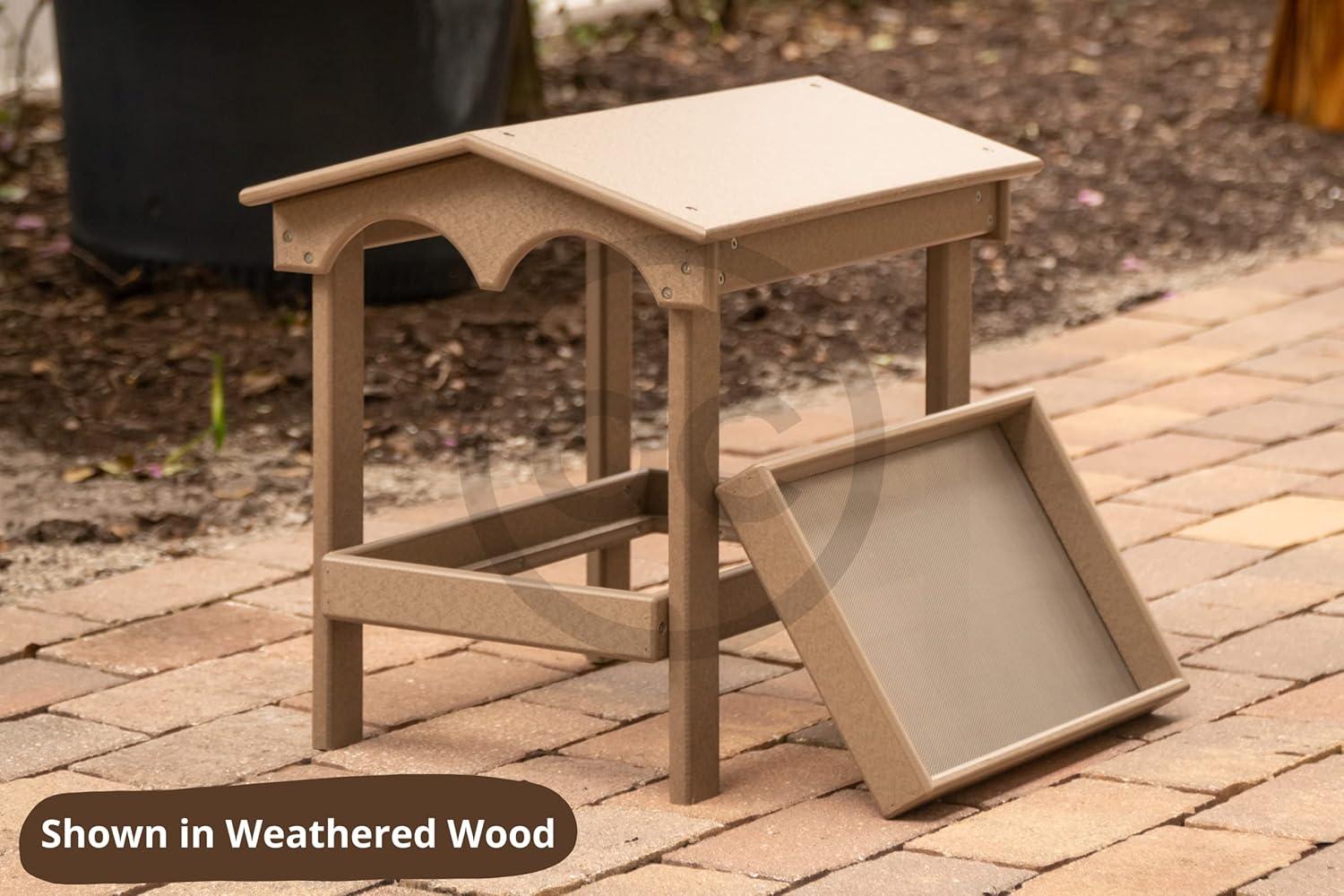 Durable Materials: Handcrafted from poly lumber, a dense HDPE plastic resin made from recycled plastic laundry bottles and milk jugs. Assembled with stainless hardware. Simply clean with warm water and mild soap.