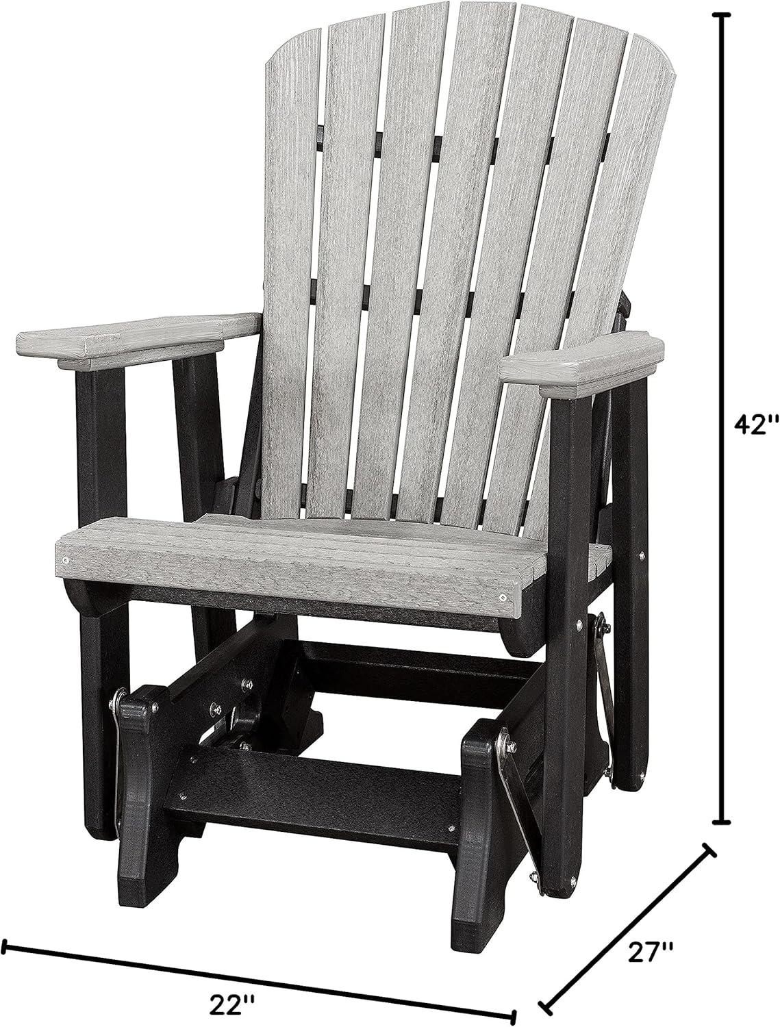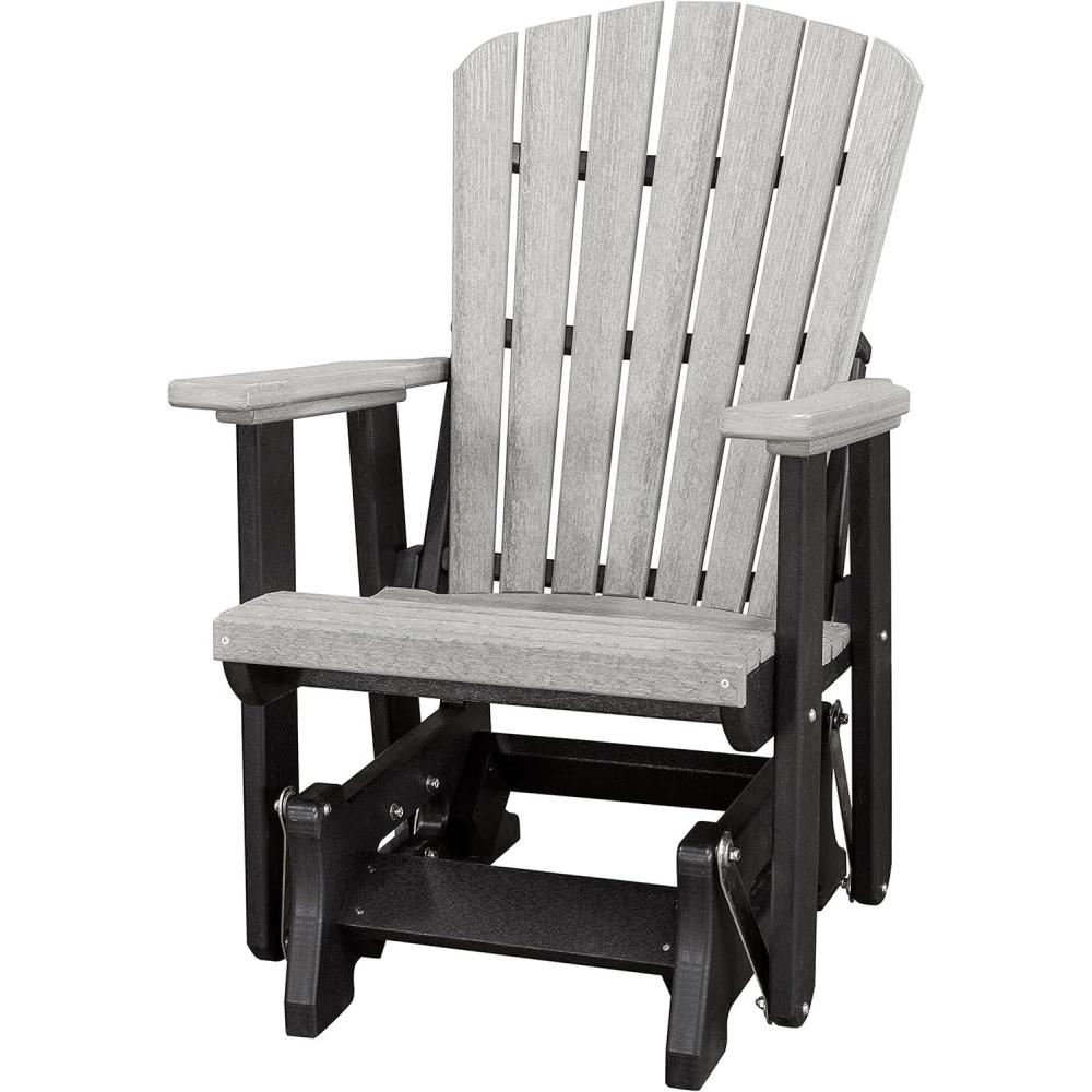 DutchCrafters Slat Fan Back Poly Adirondack Glider Outdoor Patio Chair (Black & Cedar)(Black & Light Gray)
