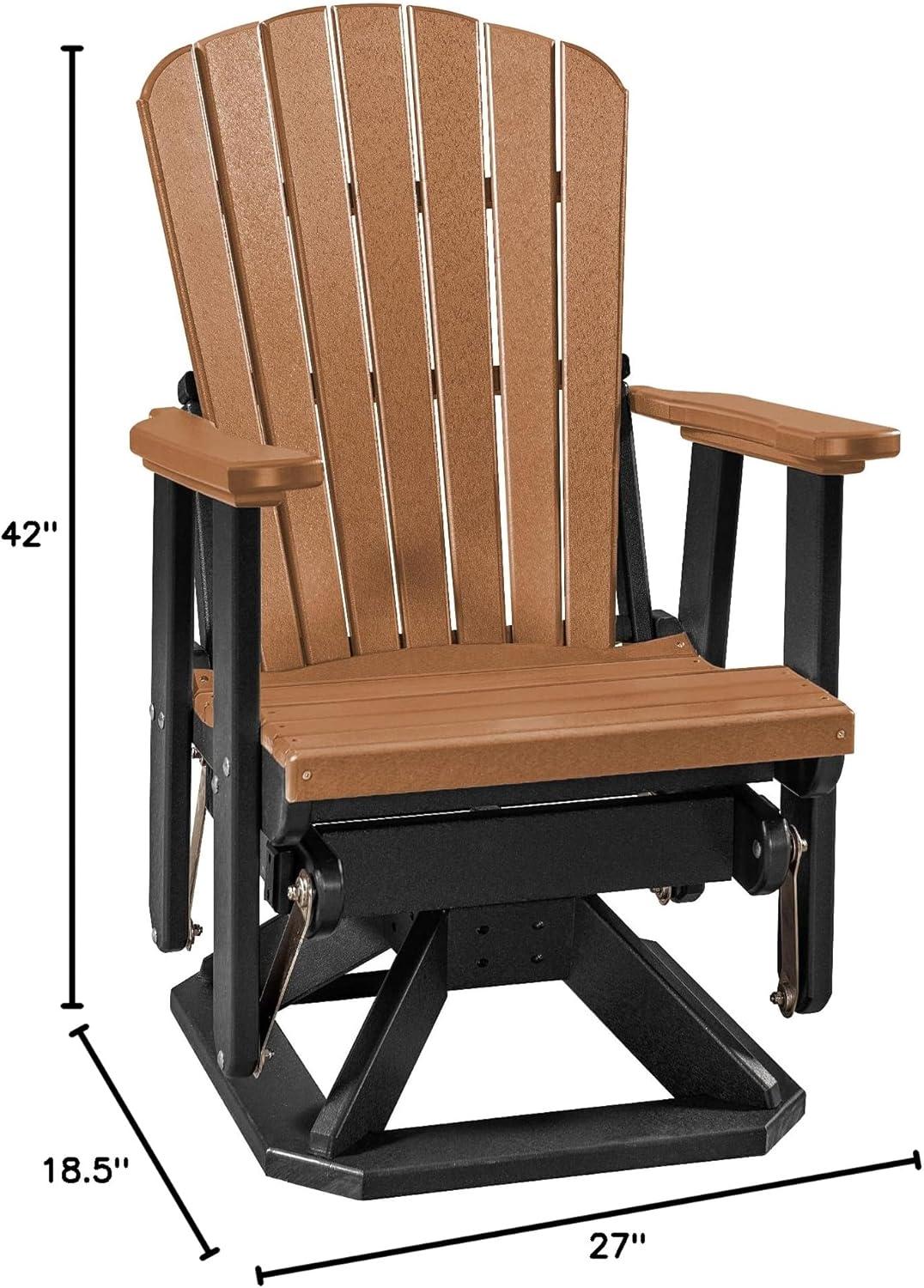 DutchCrafters Slat Fan Back Poly Adirondack Swivel Glider Outdoor Patio Chair (Tudor Brown & Weatherwood)(Black & Cedar)