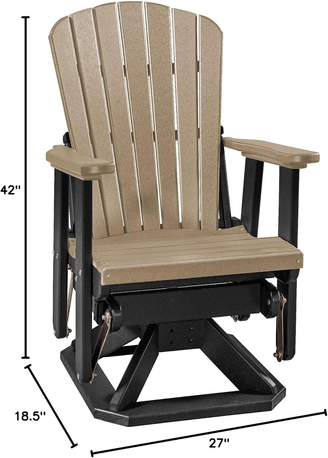 DutchCrafters Slat Fan Back Poly Adirondack Swivel Glider Outdoor Patio Chair (Tudor Brown & Weatherwood)(Black & Weatherwood)