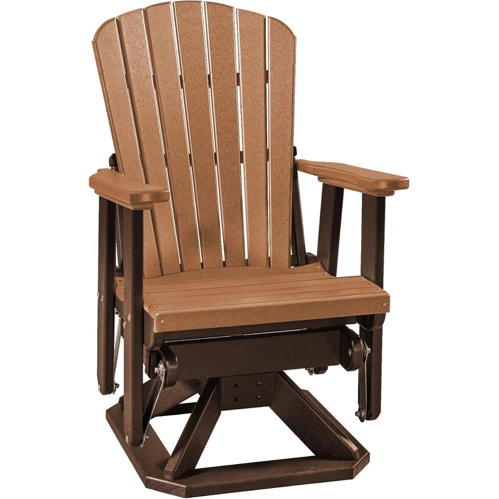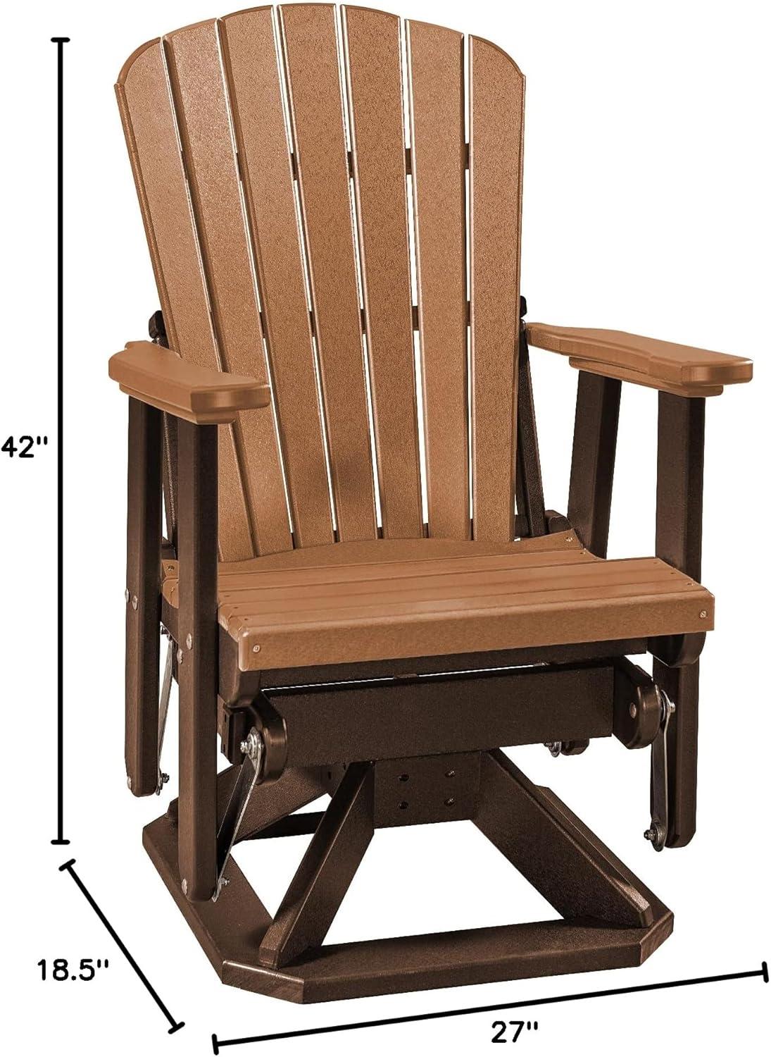 DutchCrafters Slat Fan Back Poly Adirondack Swivel Glider Outdoor Patio Chair (Tudor Brown & Weatherwood)(Tudor Brown & Cedar)