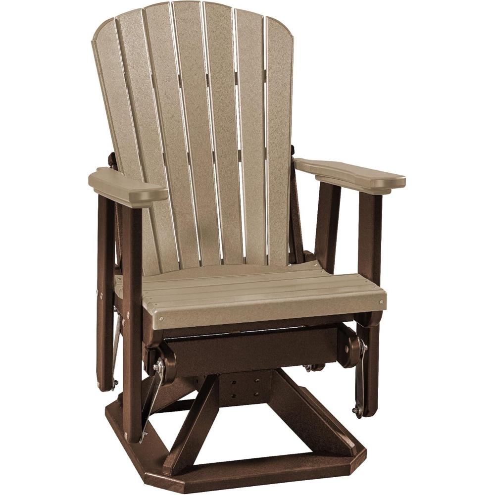 DutchCrafters Slat Fan Back Poly Adirondack Swivel Glider Outdoor Patio Chair (Tudor Brown & Weatherwood)(Tudor Brown & Weatherwood)