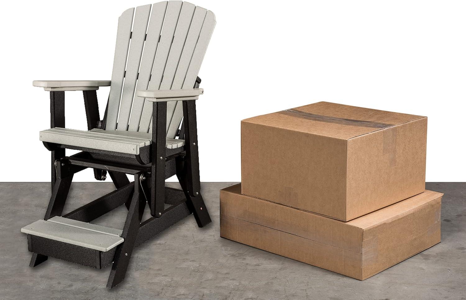 DutchCrafters Slat Fan Back Poly Balcony Adirondack Glider with Footrest Outdoor Patio Chair (White & Light Gray)(Black & Light Gray)