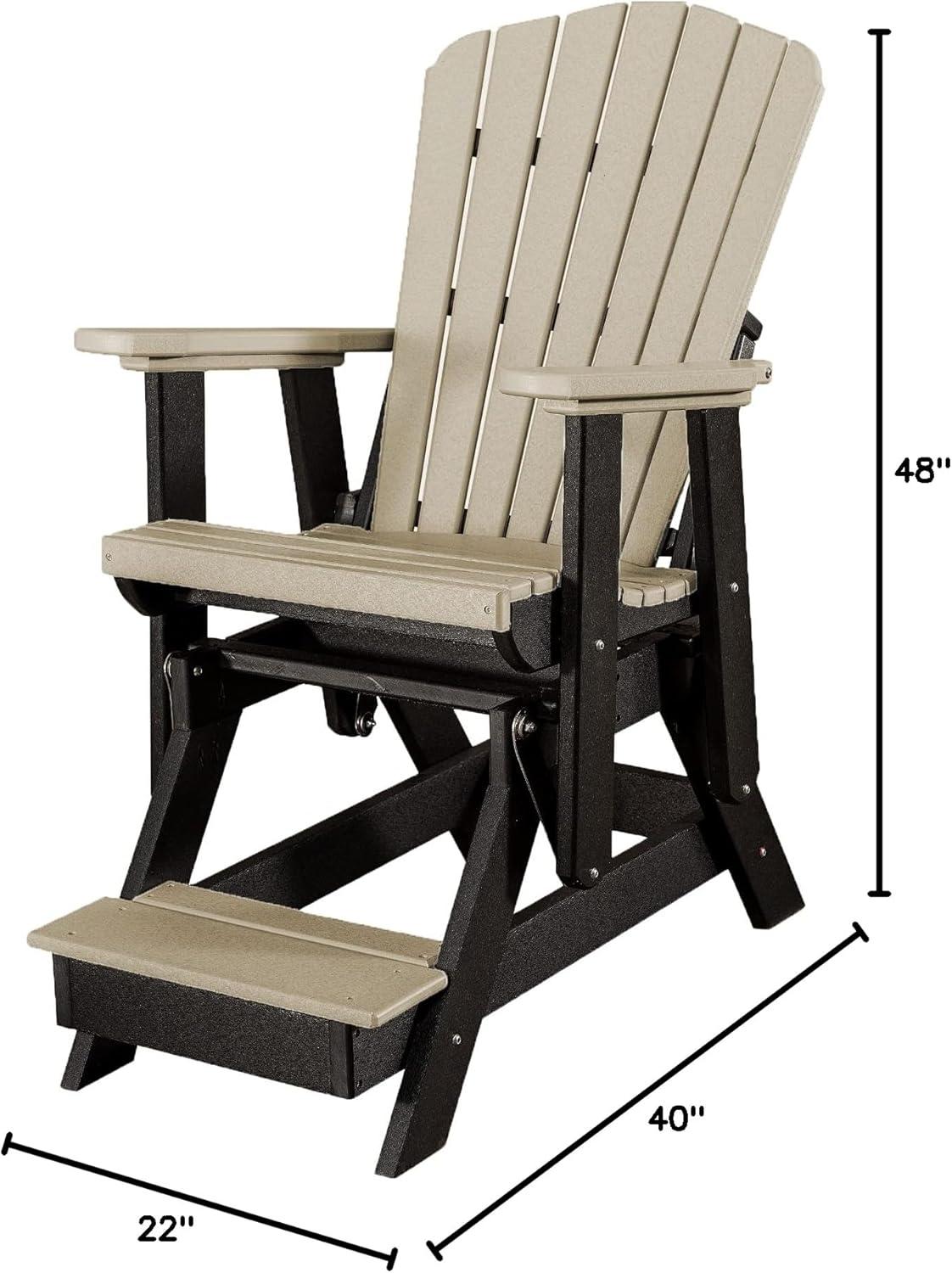 DutchCrafters Slat Fan Back Poly Balcony Adirondack Glider with Footrest Outdoor Patio Chair (White & Light Gray)(Tudor Brown & Cedar)