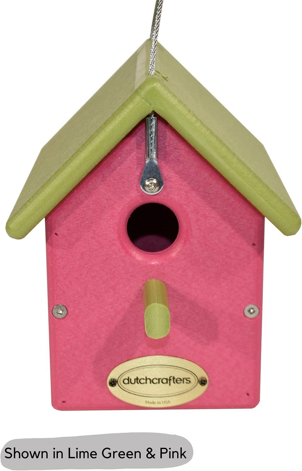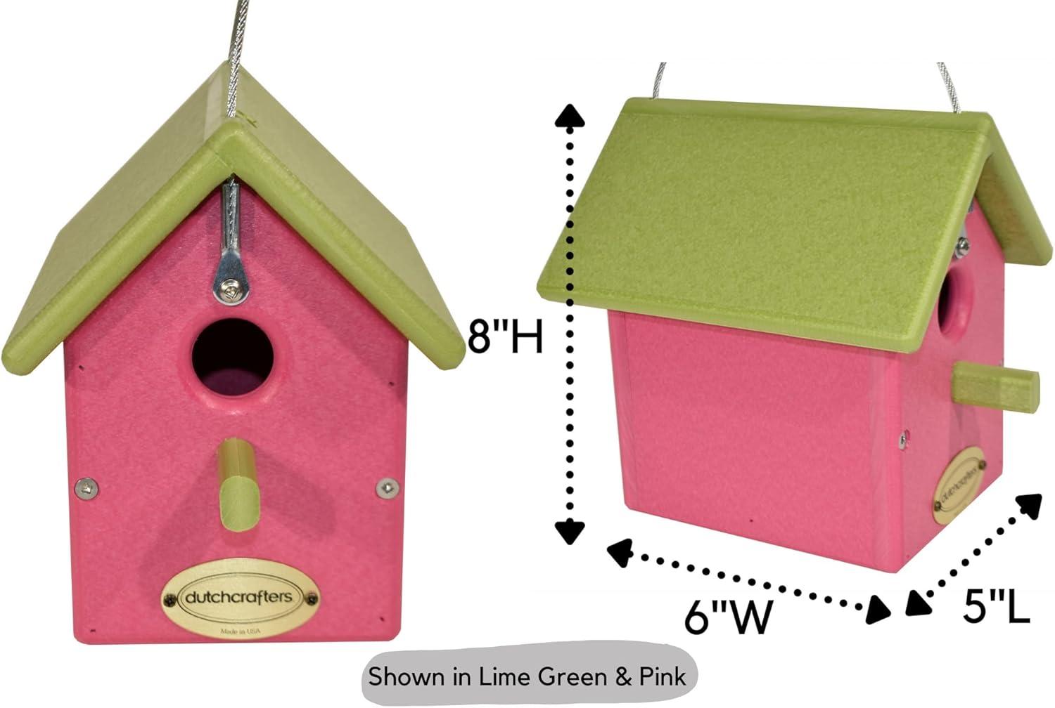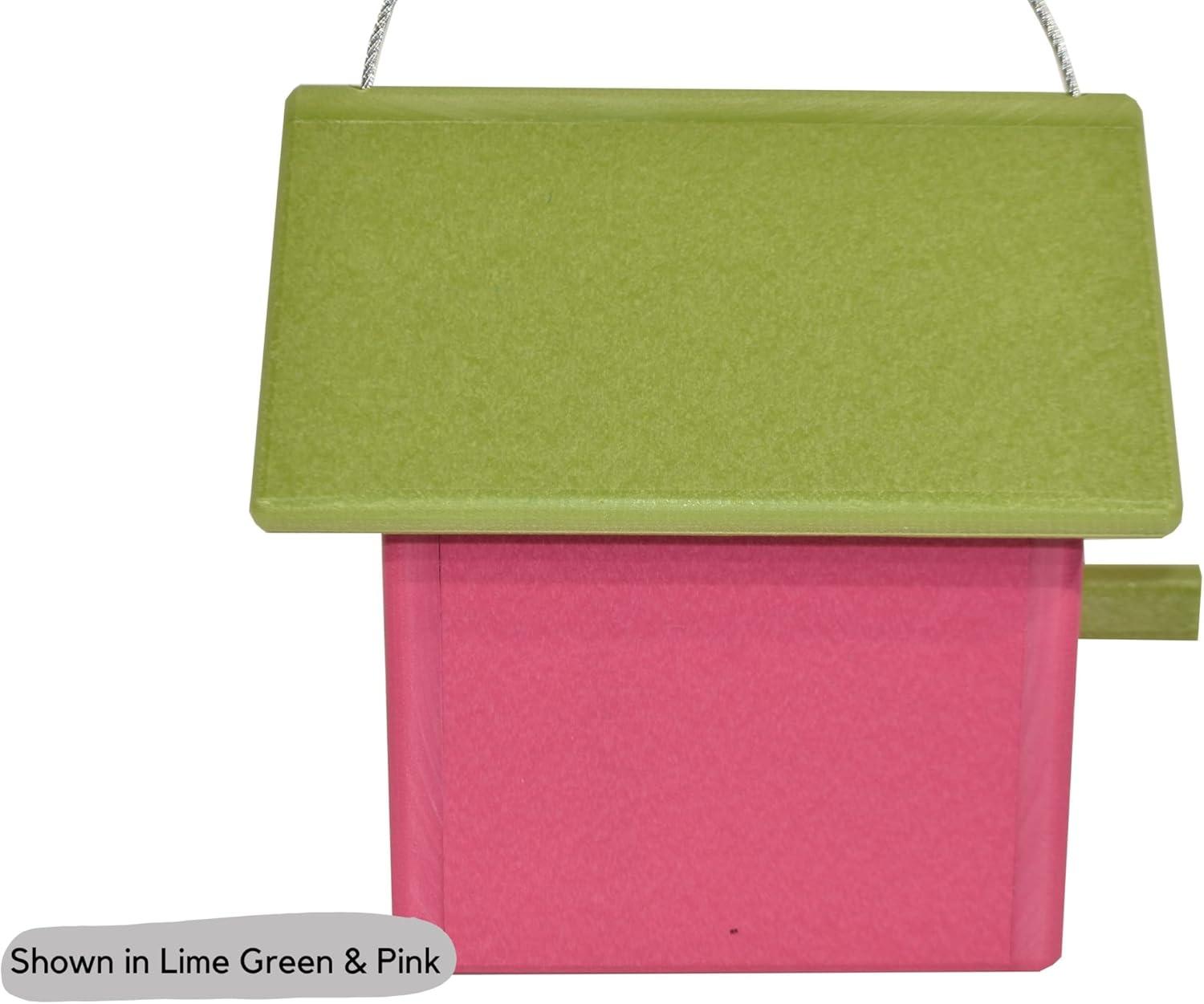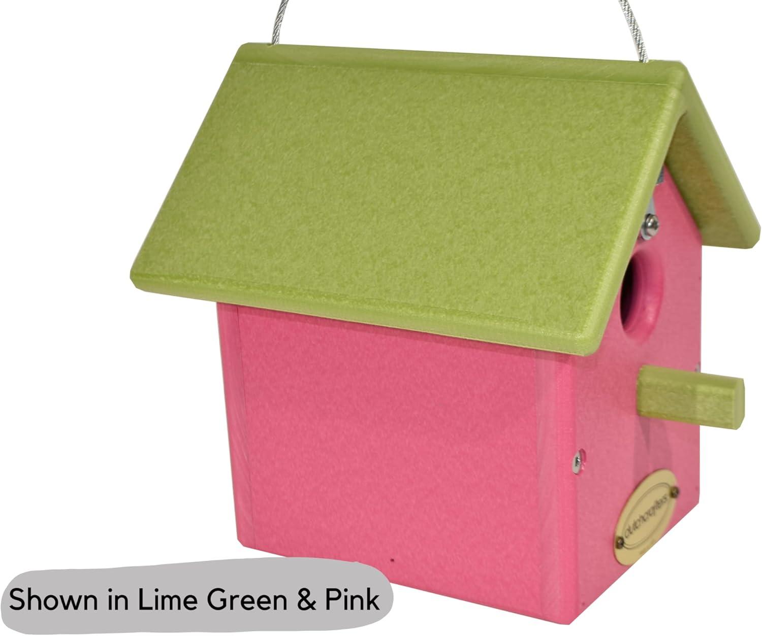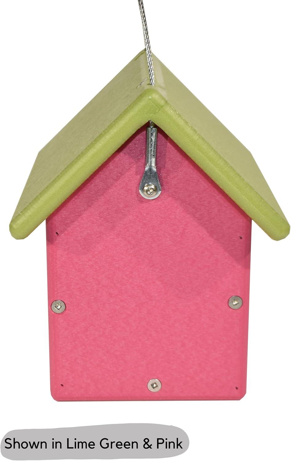 DutchCrafters Small Plastic Poly Hanging Bird House with Perch and Detachable Roof, Outdoor Nesting Box for Wild Birds – Amish Made in USA (Light Gray & Aruba Blue)(Lime Green & Pink)
