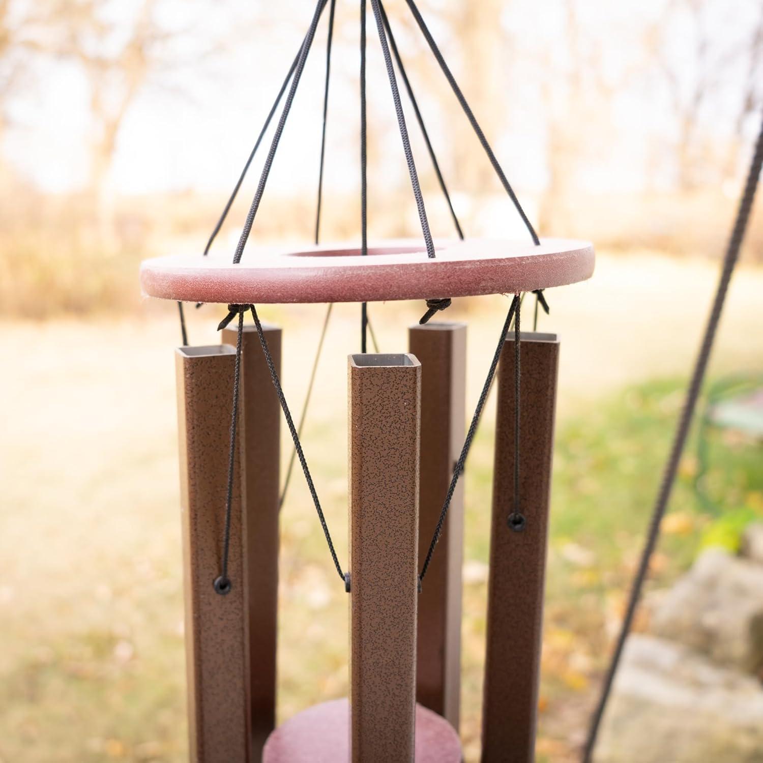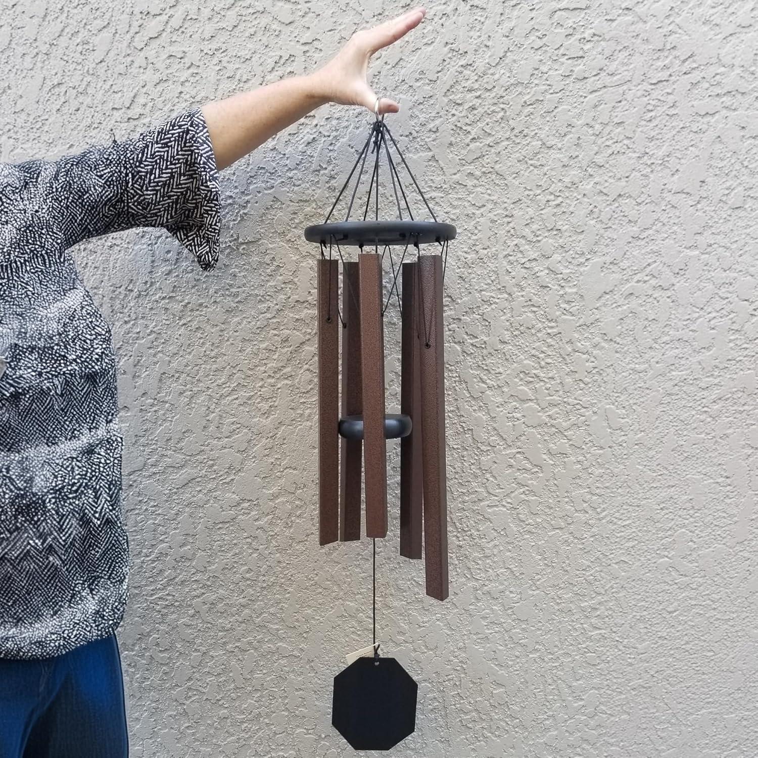 Small Outdoor Wind Chime – Standing 36 inches tall, this unique wind chime features deep tones and a bronze finish that complements any outdoor patio decor. Place it on your balcony, porch, backyard, patio, or front door as a decorative doorbell chime. Its engraved personal message makes a thoughtful and unique gift for friends, family or loved ones.