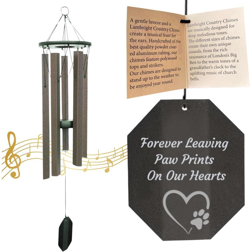 Pet Loss Gifts – Remember a beloved pet with memorial wind chimes, a thoughtful remembrance gift for loss of dog or loss of cat. The heartfelt message, “Forever Leaving Paw Prints on Our Hearts,” will serve as a meaningful reminder of the unconditional love and cherished memories shared with a furry friend. Perfect for those seeking pet memorial gifts or sympathy gifts for dog memorial, dog passing away gifts, a dog remembrance gift or cat memorial gifts.